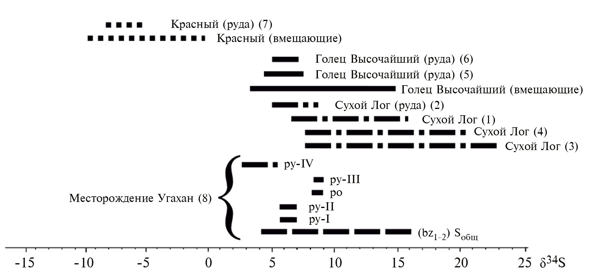 - Tarasova Y.I., Budyak A.E., Chugaev A.V., Goryachev N.A., Tauson V.L., Skuzovatov S.Y., Bryukhanova N.N., Parshin A.V., Abramova V.D., Gareev B.I., Reutsky V.N. (2020) Mineralogical and isotope-geochemical (δ13C, δ34S and Pb-Pb) characteristics of the Krasniy gold mine (Baikal-Patom Highlands): constraining ore-forming mechanisms and the model for Sukhoi Log-type deposits. Ore Geol. Rev. 119, 103365 https://doi.org/10.1016/j.oregeorev.2020.103365.