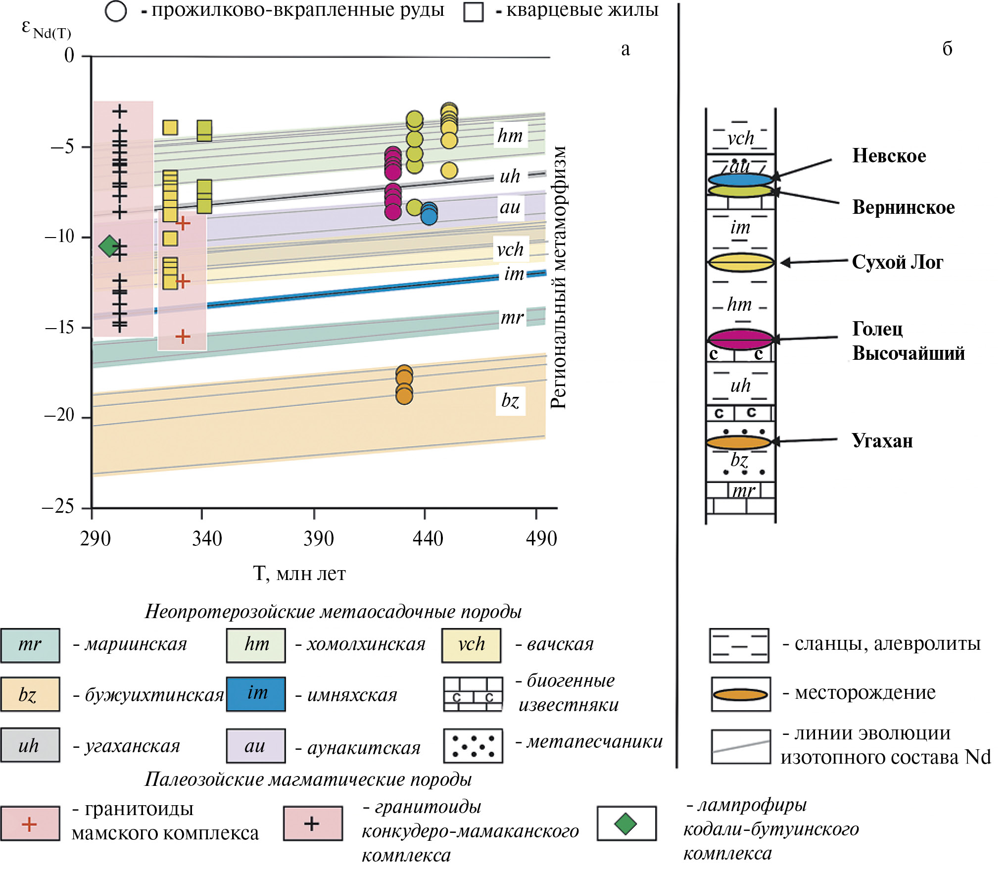 Ленская провинция, охватывающая территорию Северного Забайкалья (Россия), является одной из крупнейших золоторудных провинций мира (Константинов, 2010а). В ее пределах известно более трех десятков орогенных месторождений золота крупного и среднего масштаба, включая месторождение мирового класса Сухой Лог (Goldfarb et al., 2001, 2014). Изучение их геологического строения, минерального состава руд, возраста, геохимических и изотопно-геохимических характеристик продолжается на протяжении более полувека, что привело к появлению среди исследователей разных взглядов на их генезис (Буряк, 1965, 1982; Митрофанов и др., 1983; Рундквист и др., 1992; Дистлер и др., 1995; Лаверов и др., 2000; Distler et al., 2004; Ланда и др., 2006; Кучеренко, 2004, 2007, 2014; Корольков, 2007; Large et al., 2007; Русинов и др., 2008; Юдовская и др., 2011; Иванов, 2014; Кучеренко, 2016; Попов и др., 2017; Кряжев, 2017; Тарасова и др., 2016; Tarasova et al., 2020, 2022; Chugaev et al., 2022a,b).