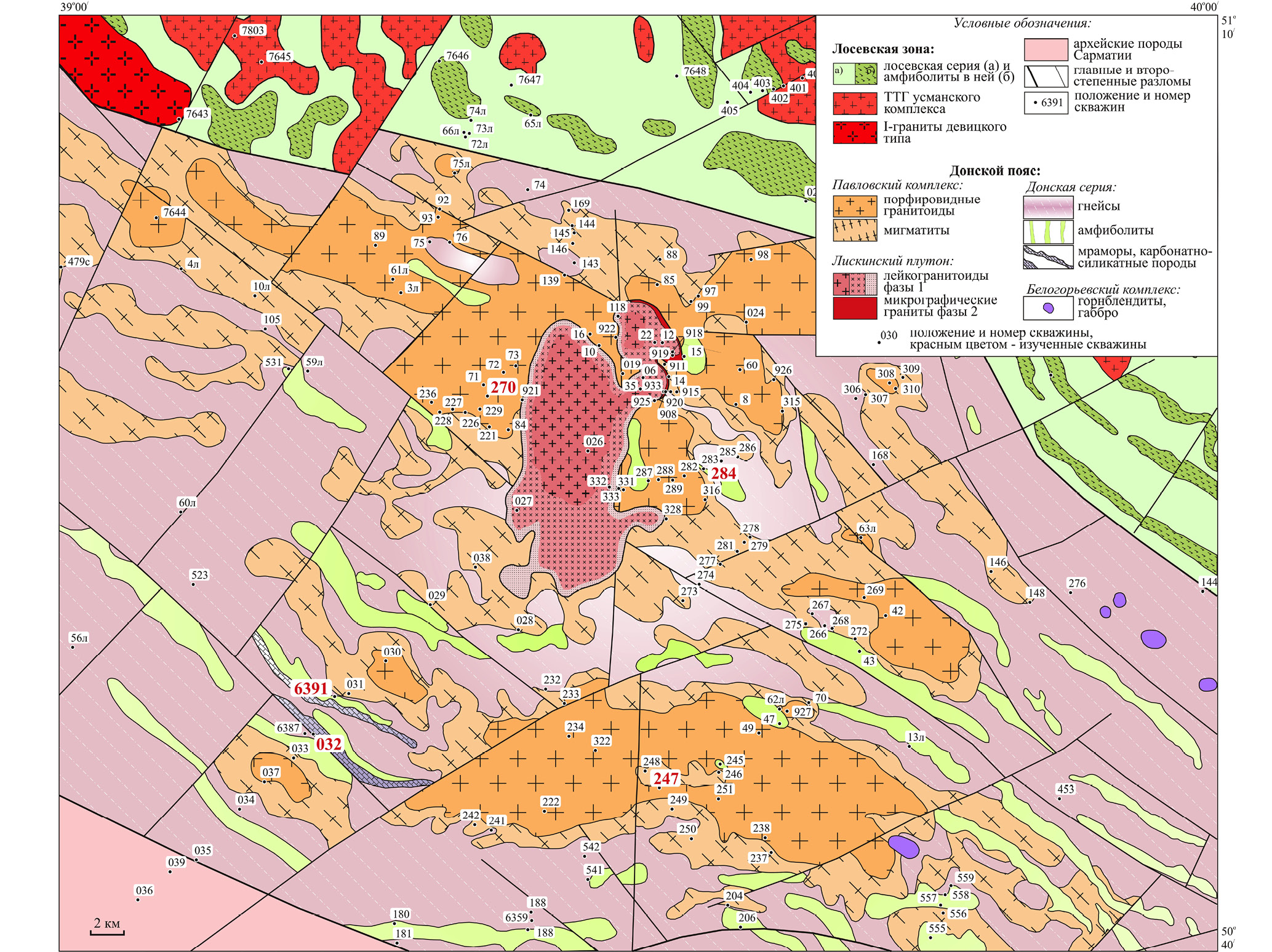 Значимость геологии Волго-Донского орогена (ВДО) в эволюции земной коры Восточно-Европейского кратона подчеркивается большим интересом к нему многих исследователей. Несмотря на это, геодинамическая интерпретация палеопротерозойских пород западной части ВДО была предметом многочисленных дискуссий (Буш и др., 2000; Терентьев, 2005; Чернышов и др., 1997; Щипанский и др., 2007; Bogdanova et al., 2005; Mints et al., 2015; Shchipansky, Bogdanova, 1996 и др.). Некоторые исследователи полагают, что ювенильная кора ВДО образовалась в островодужной обстановке андийского (Shchipansky, Bogdanova, 1996; Щипанский и др., 2007) или тихоокеанского типов (например, Terentiev et al., 2017; Terentiev, Santosh, 2020), другие считают, что породы орогена возникли в результате континентального рифтогенеза без превращения в океан (Чернышов и др., 1997; Mints et al., 2015). К разным выводам приводит, в том числе, недостаток информации по геологии, возрасту, вещественному составу, геохимии пород донской серии, которая распространена на западе ВДО. До недавнего времени отсутствовали прецизионные геохимические и изотопные исследования по супракрустальным и интрузивным породам Донского террейна.
