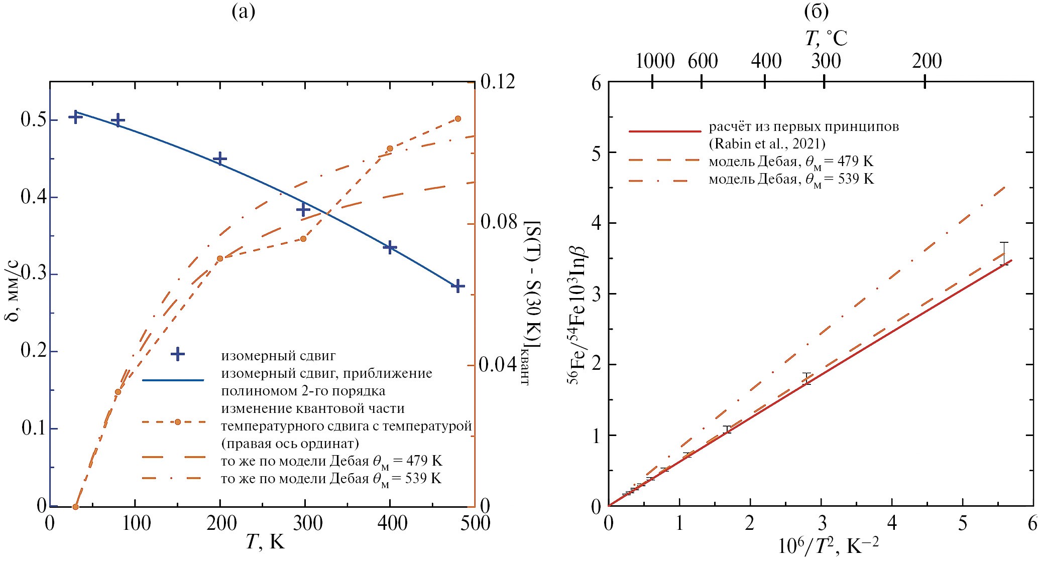 Температурный сдвиг обычно описывают в рамках модели Дебая (Шпинель, 1969; De Grave, Van Alboom, 1991):