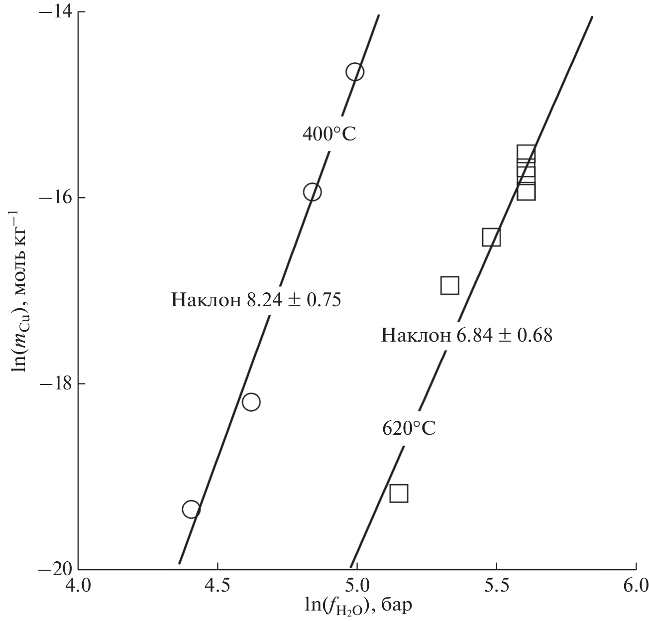 The experimental data available in the literature on the solubility of Cu(met.) and Cu2O (cuprite) in water under hydrothermal conditions have been processed. Key experiments were carried out on the solubility of cuprite at 300 C, saturated vapor pressure of H2O, vs. pH of the solution. As a result, a set of values of thermodynamic properties for 25°C, 1 bar and parameters of the HKF (Helgeson-Kirkham-Flowers) and AD (Akinfiev-Diamond) equation of states for Cu(I) hydroxocomplexes was obtained, which make it possible to describe their behavior in a wide range of temperatures (0 – 600 C), pressures (1 – 3000 bar) and densities of aqueous fluid (0.01 – 1 gcm–3). As it has been shown by thermodynamic modeling the Cu+ ion is prevalent in the acidic and weakly alkaline regions of the aqueous solvent over the entire temperature and pressure range studied. The effect of the neutral CuOH hydroxocomplex begins to show up in the alkaline region at T > 300 C and grows with increasing temperature. The second copper hydroxocomplex Cu(OH)2– shows up only in the strongly alkaline region, and the temperature has almost no effect on its behavior