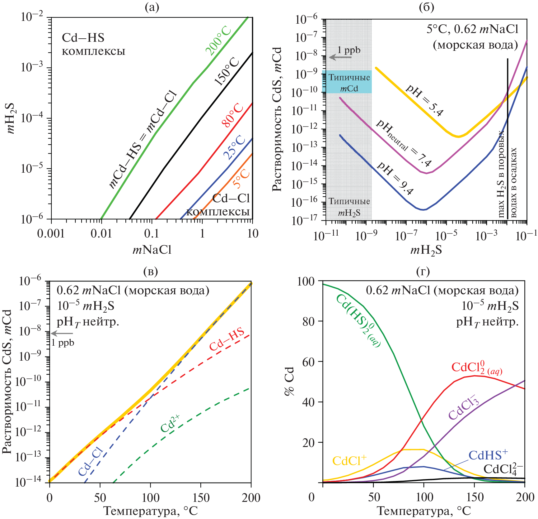 - Powell K.J., Brown P.L., Byrne R.H., Gajda T., Hefter G., Leuz A.-K., Sjoberg S. and Wanner H. Chemical speciation of environmentally significant metals with inorganic ligands. Part 4: The Cd2+ + OH–, Cl–, and systems (IUPAC Technical Report) // Pure Appl. Chem. 2011. V. 83. P. 1163–1214.