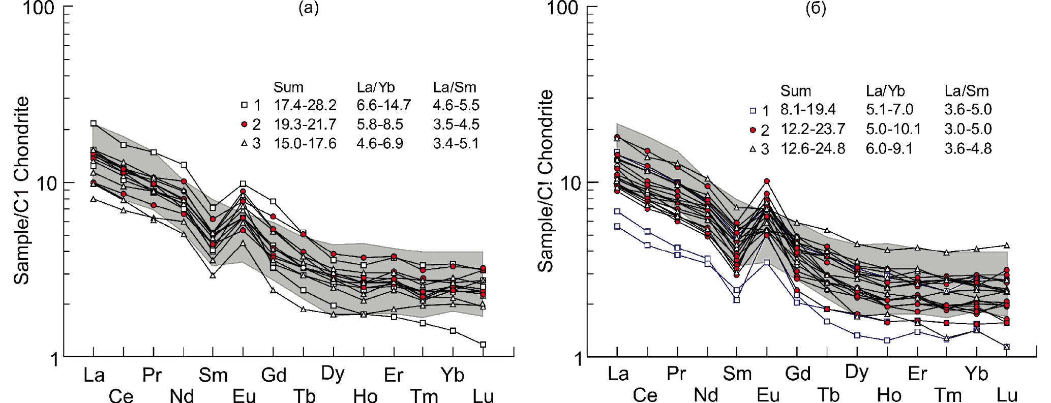 Габбронориты ИВ характеризуются однотипным распределением петрогенных, редких и редкоземельных элементов в ЭПГ рифе и габброноритах и анортозитах расслоенной зоны (фиг. 4, фиг. 7, фиг. 8). Изотопными исследованиями был подтвержден синхронный возраст формирования лейкократовых габброноритов и анортозитов расслоенной зоны, вмещающей риф, и перекрывающих ее габброноритов (Рундквист и др., 2014). По мнению авторов, формирование габброноритов и анортозитов происходило в процессе внутрикамерной дифференциации и не связано с дополнительным поступлением расплава в магматическую камеру (Рундквист и др., 2014; Чащин и др., 2016).