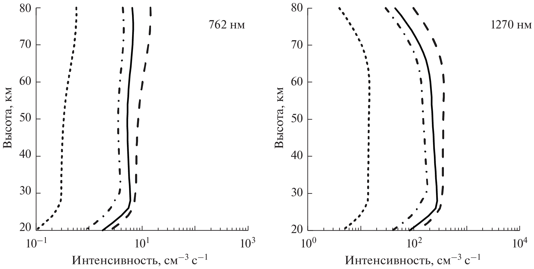 singlet states of molecular oxygen for the Earth’s middle atmosphere, we calculated the intensity profiles of