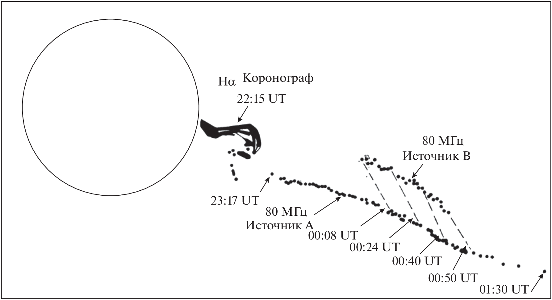 - ‒ Morosam P.E., Kumari A., Kilpua E.K.J., Hamini A. Mo-ving solar radio bursts and their association with coronal mass ejections // Astron. Astrophys. V. 647. № L12. P. 1‒5. 2021. https://doi.org/10.1051/0004-6361/202140392