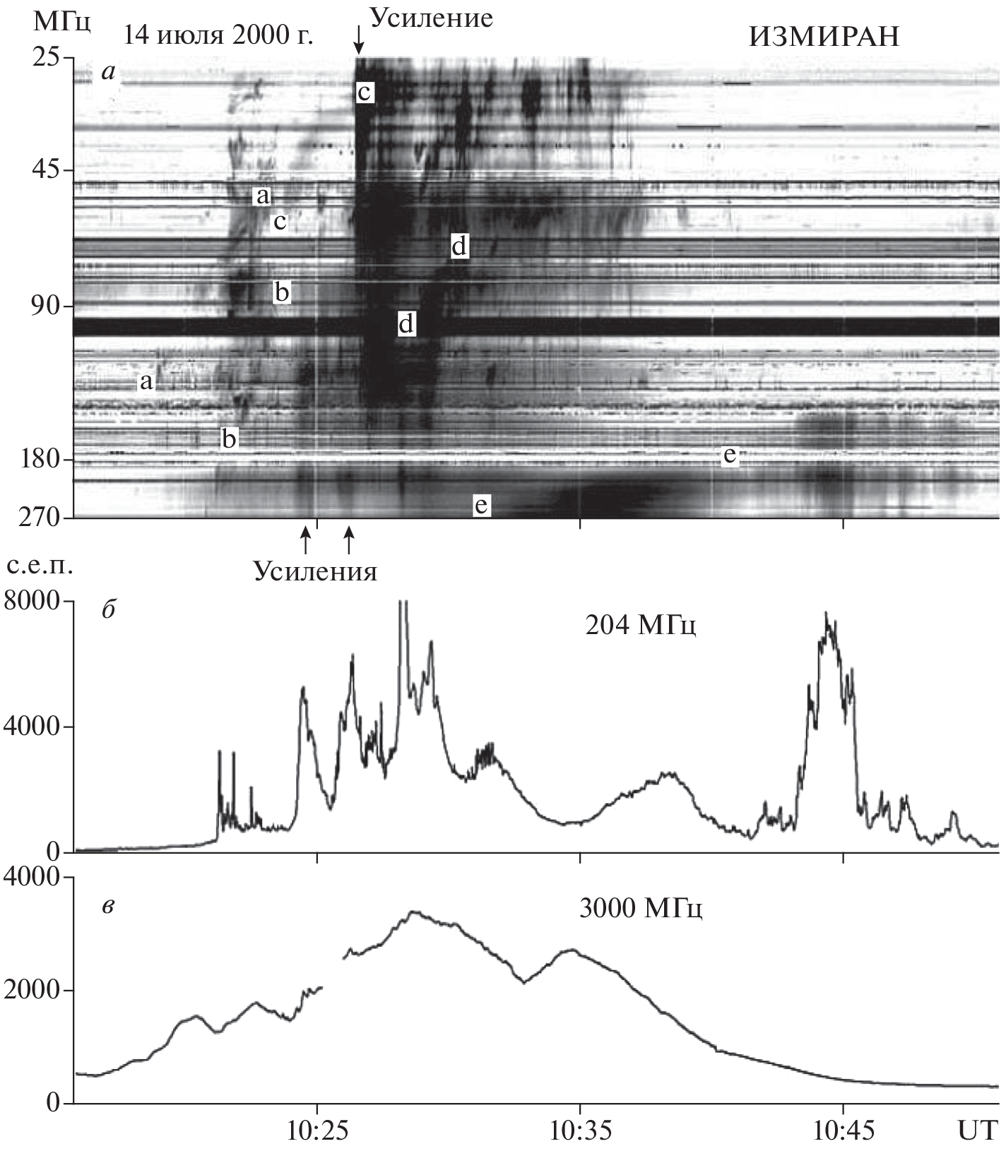 - ‒ Caroubalos C., Alissandrakis C.E., Hillaris A. et al. ARTEMIS IV radio observations of the 14 July 2000 large solar event // Sol. Phys. V. 204. P. 167‒179. 2001.