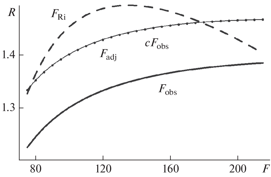 На основе данных медиан электронной концентрации максимума F2-слоя NmF2 пары ионосферных станций Боулдер–Хобарт за 1963–2013 гг. проведен анализ зависимости локального индекса годовой асимметрии R в полдень от солнечной активности, где индекс R – отношение январь/июль суммарной концентрации NmF2 для этой пары станций. Использованы средние за 81 день индексы солнечной активности: Fobs – плотность потока радиоизлучения Солнца на длине волны 10.7 см, измеренная с помощью наземных радиотелескопов, и Fadj – значения Fobs, приведенные к фиксированному расстоянию от Солнца в одну астрономическую единицу. Получено, что уравнения регрессии, отражающие зависимости медиан NmF2 от Fobs, позволяют получить индекс годовой асимметрии R для фиксированного Fobs с учетом замены Fobs на cFobs в этих уравнениях регрессии, где коэффициент c равен 1.03 и 0.97 для января и июля. Вариант c = 1 соответствует пренебрежению годовой асимметрией в индексе Fobs из-за эллиптичности орбиты Земли. Для варианта c = 1 индекс R увеличивается с ростом солнечной активности от 1.2 при низкой до почти 1.4 при высокой активности. Дополнительный учет годовой асимметрии в Fobs приводит к увеличению индекса R примерно на 0.1 почти независимо от уровня солнечной активности. Этот вывод получен, по-видимому, впервые. Индекс Fadj также позволяет получить корректную оценку индекса R, поскольку годовая асимметрия в потоке солнечного излучения косвенно учтена через экспериментальные значения NmF2.