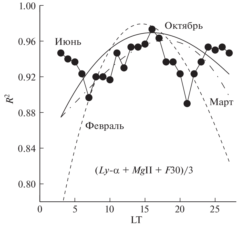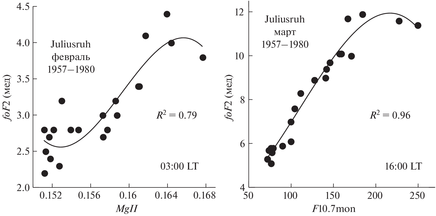 R2 according to the Fisher F-test is used as a measure of the quality of the description of the foF2 dependence