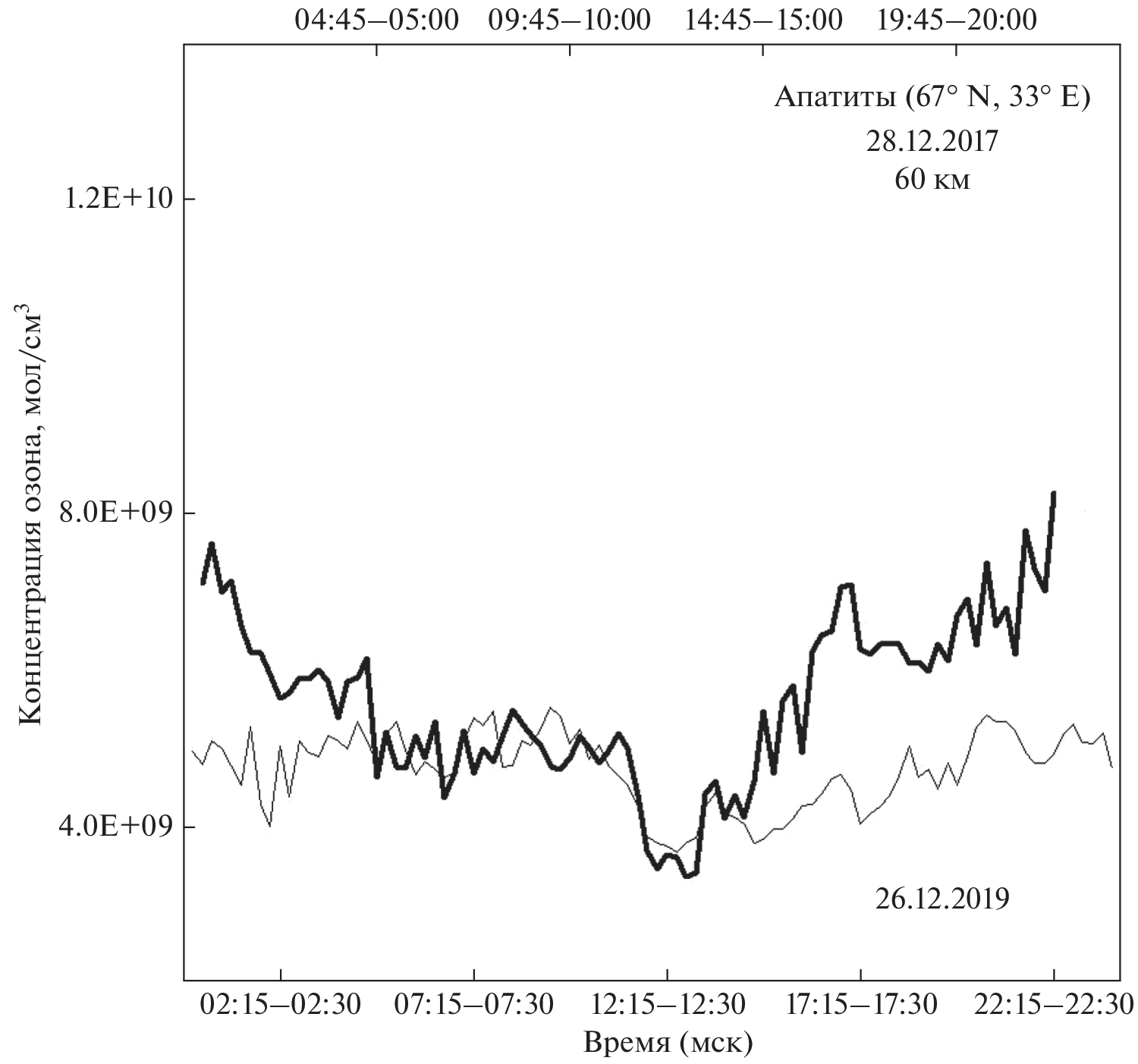 same time, the scale of mesospheric ozone variability (60 km) over Apatity is comparable or exceeds the