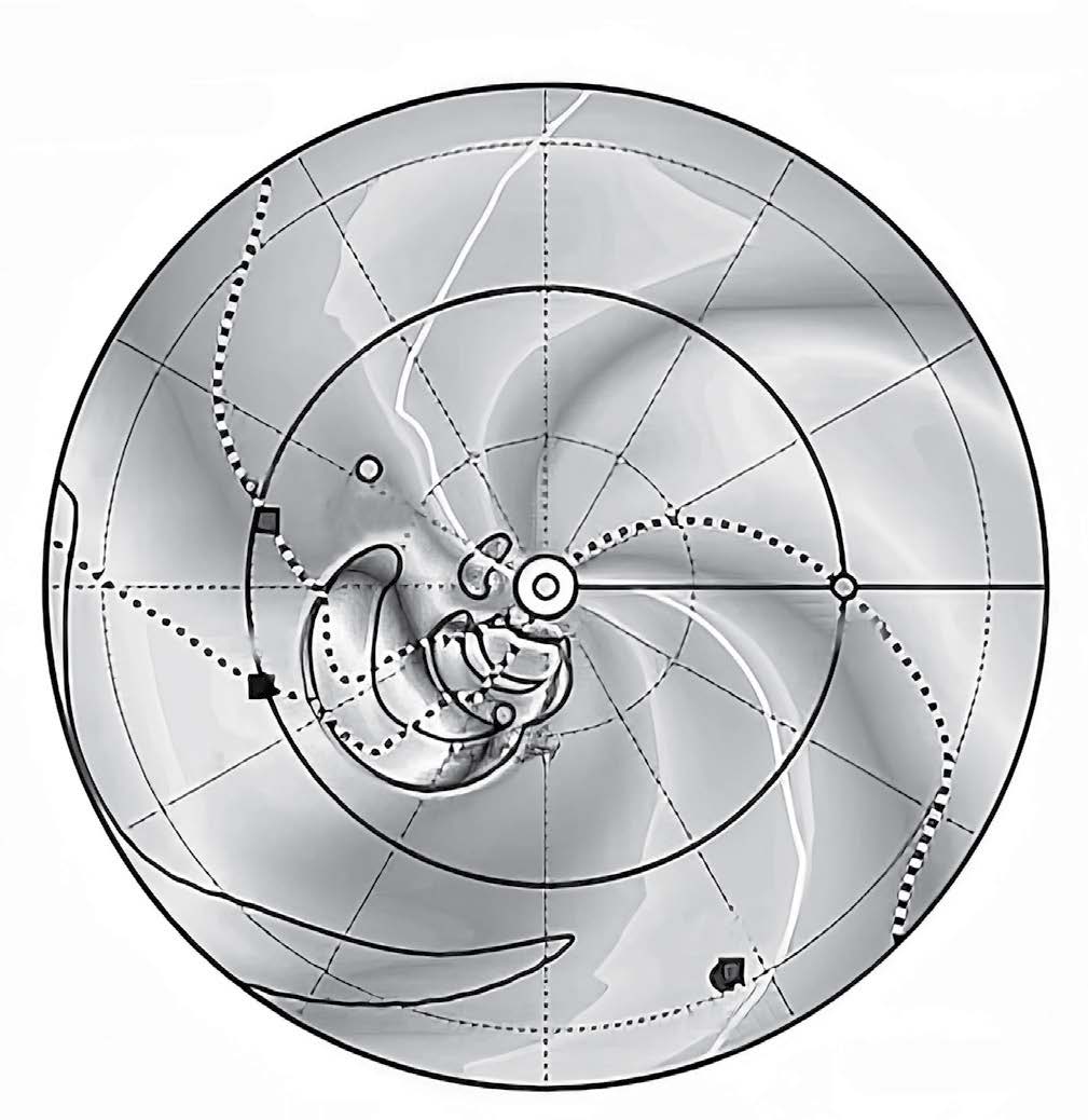 На рис. 13 эти два выброса уже слились в одно межпланетное возмущение, приближающееся к орбите Земли.