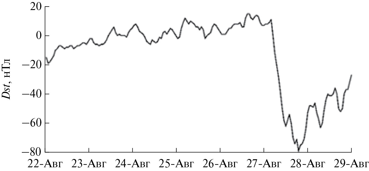 Рис. 3. Изменения Dst-индекса за период 22.08–28.08.2014 г.