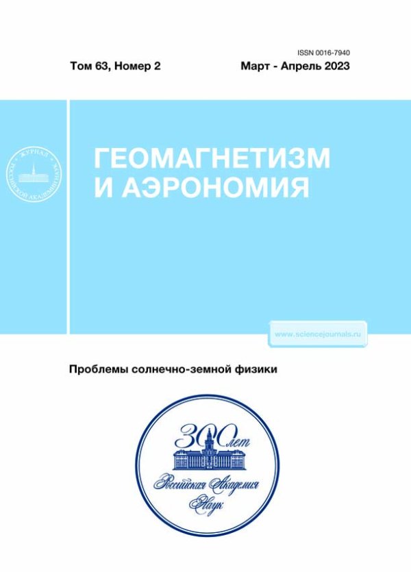 Выполнено исследование одновременных наблюдений ультранизкочастотных колебаний в диапазоне частот 0.1‒5.0 Гц типа “серпентинной эмиссии” (Serpentine Emission ‒ SE), наблюдаемой в области полярной шапки, и возмущений в авроральной зоне. Для анализа использованы уникальные аналоговые магнитные записи Антарктической обсерватории Восток (исправленные геомагнитные координаты Φ' = –85.41°, Λ' = 69.01°), оцифрованные с высокой частотой (20 Гц) и находящиеся в свободном доступе на сайте Мирового Центра Данных по Солнечно-Земной Физике, Москва. За период 1966 (ноябрь, декабрь), 1968 (март–июль), 1970–1972, 1973 (январь–март) гг. проанализировано поведение “серпентинной эмиссии” во время развития 180-ти изолированных суббурь, выделенных по вариации AL-индекса. Обнаружено прерывание режима генерации “серпентинной эмиссии” в области полярной шапки во время активной фазы интенсивных изолированных суббурь (с максимальной величиной AE-индекса ∼500‒600 нТл). В фазу экспансии суббурь возникает шумовое широкополосное электромагнитное излучение с резким передним фронтом в диапазоне Pc1‒2, также регистрируемое в полярной шапке. Шумовое излучение имеет резкий передний фронт и возникает примерно через 2 ч после переориентации Bz-компоненты ММП с северного направления на южное. Момент прерывания SE по времени совпадает с началом этого излучения и моментом достижения Bz-компонентой ММП максимальных отрицательных значений. Эффект прерывания SE наблюдается на фоне относительно стабильных других геоэффективных параметров солнечного ветра и ММП. Средняя продолжительность прерывания эмиссии составляет ∼3 ч. Косвенным подтверждением воздействия суббуревой активности на режим генерации SE является совпадение закономерностей суточной и сезонной вариации интервалов прерывания SE и вероятности наблюдения суббурь. В связи с тем, что шумовое излучение возникает во время активной фазы изолированных суббурь, и спустя ∼2 ч после переориентации Bz-компоненты ММП в солнечном ветре, есть основания полагать, что оно связано с потоками плазмы, направленными к Земле из хвоста магнитосферы. По-видимому, энергия плазменных потоков в активную фазу суббури стимулирует возникновение шумового излучения, прерывающего SE.