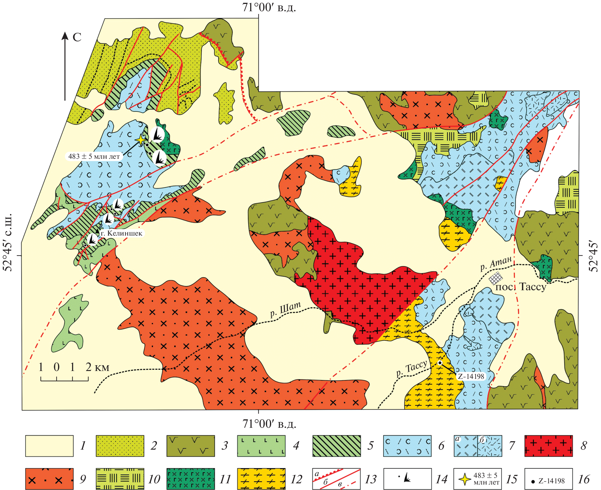- Degtyarev K.E., Tolmacheva T.Y., Tretyakov A.A., Kotov A.B., Shatagin K.N. Cambrian-Lower Ordovician complexes of the Kokchetav Massif and its fringing (Northern Kazakhstan): Structure, age and tectonic setting // Geotectonics. 2016. Vol. 30. No. 1. P. 71‒ 142.