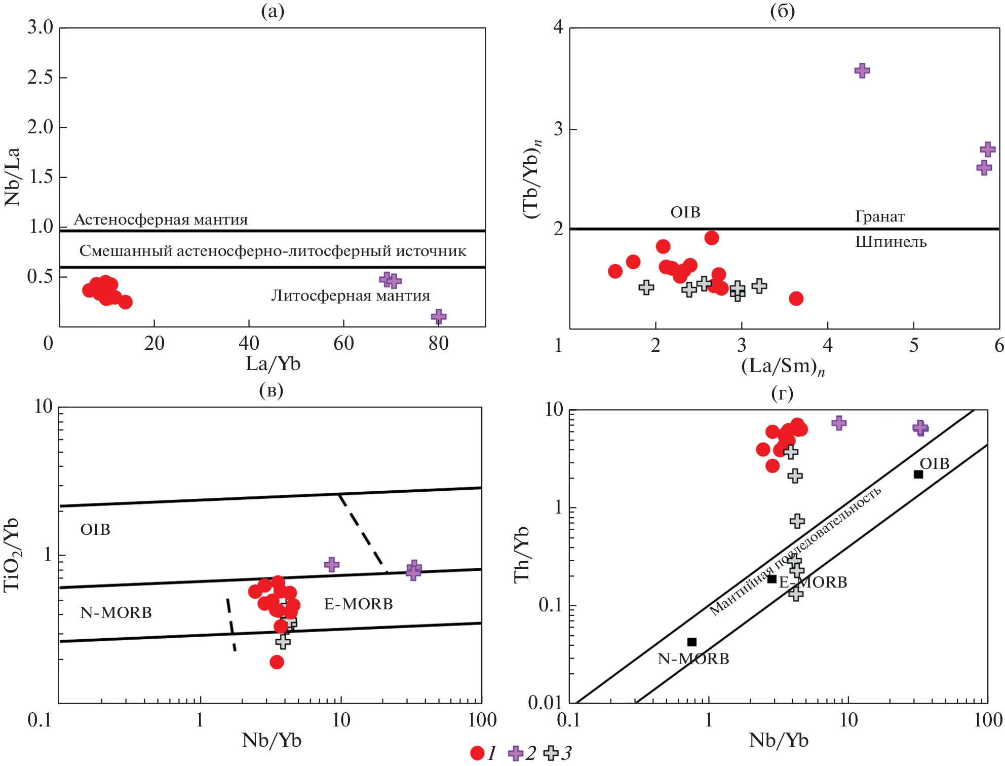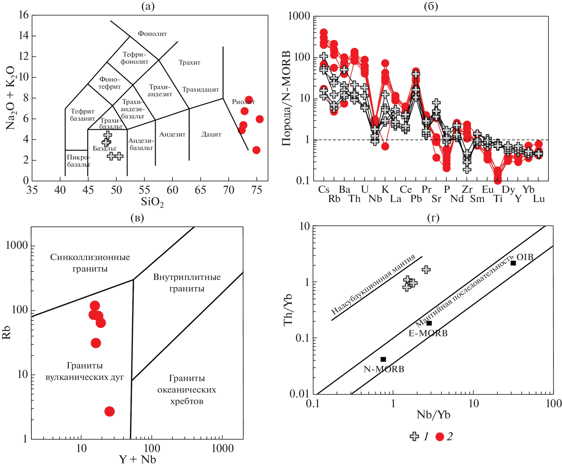 - Tarney J., Jones C.E. Trace element geochemistry of orogenic igneous rocks and crustal growth models // J. Geol. Soc. London. 1994. Vol. 151. P. 855–868.