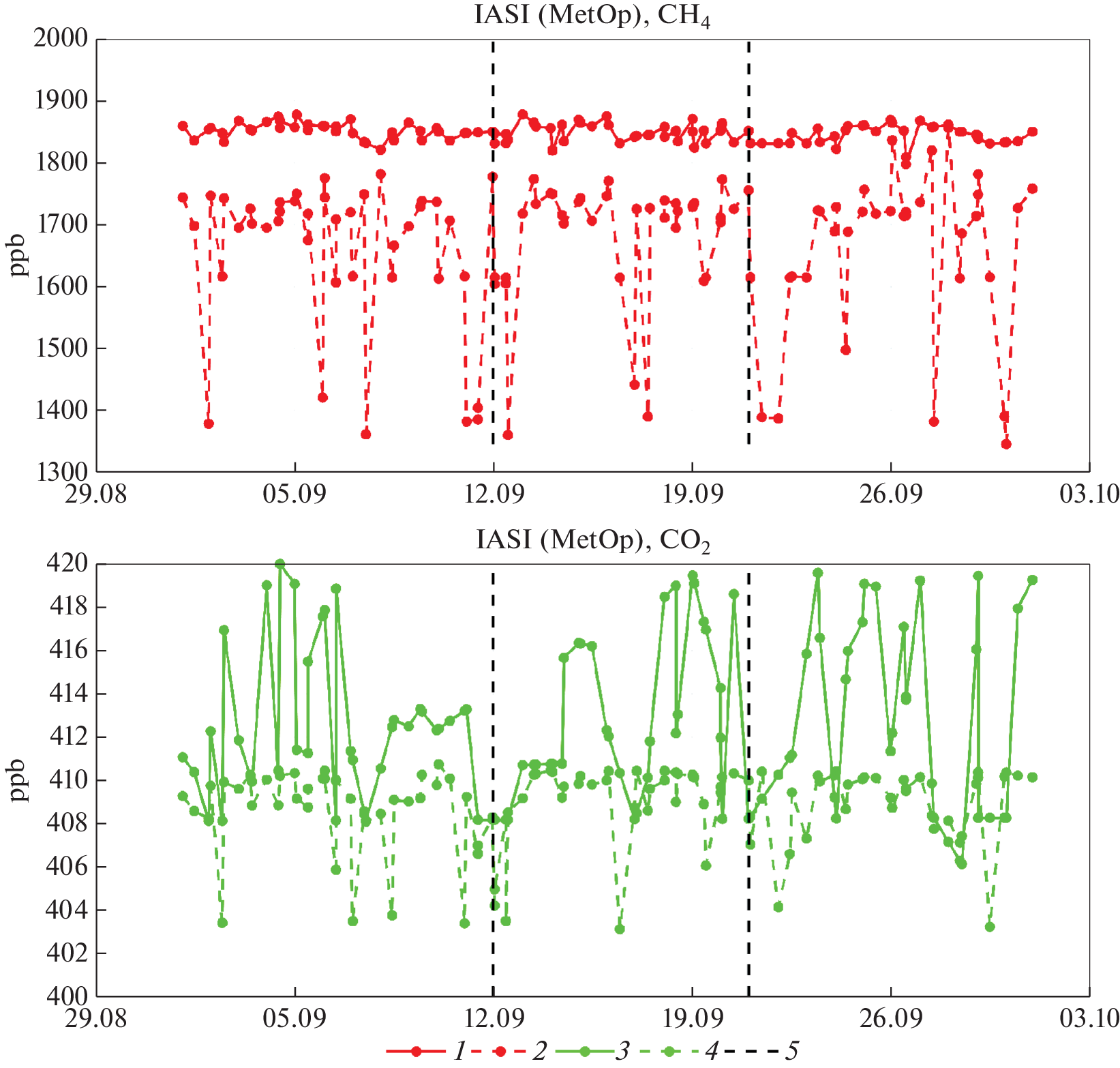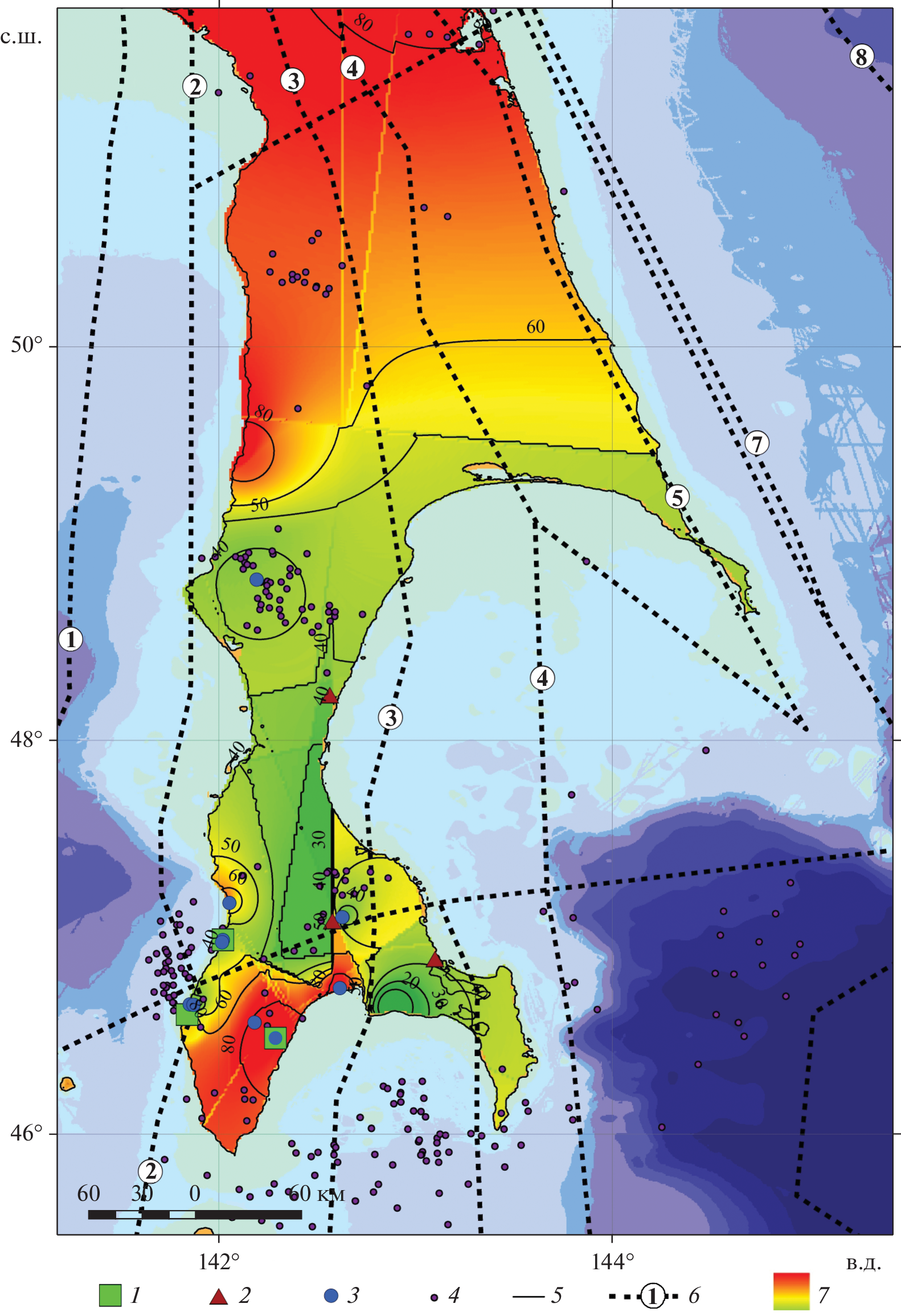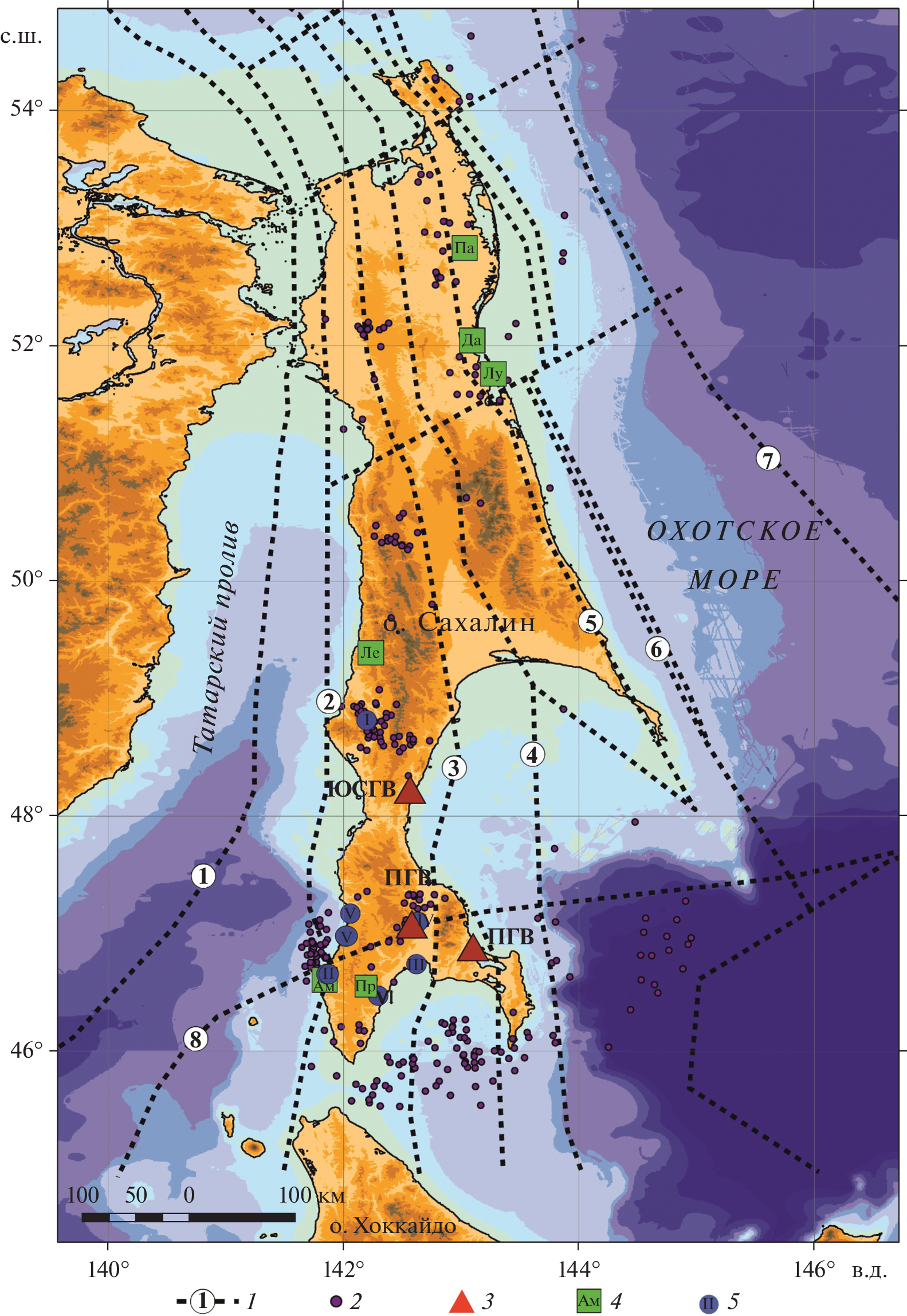 The transitional zone of the marginal seas of the Asia‒Pacific region is a significant object for geological research, the large deposits of hydrocarbons (oil, gas, gas condensate, gas hydrates) have been discovered in the regions of the transition zone. The article gives an interpretation of the main gas-geochemical and geological-tectonic regularities of the occurrence and distribution of methane and carbon dioxide fields of different types on the shelf of Sakhalin Island. A study of the gas-geochemical parameters of the emitted gases in the “continent‒shelf” transit zone was carried out based on comparison of field studies and satellite observation data. The data of satellite observation of Sakhalin Island and its shelf are presented to identify the relationship between seismic events and changes in the level of methane concentration in the atmospheric air (in particular, on the example of the methane discharge regime of the Yuzhno-Sakhalinsky mud volcano). Remote sensing data are compared with the results of the field studies, and an assessment is made of the potential using satellite observation methods for studying the gas geochemical composition of the methane and carbon dioxide field. The results obtained can make it possible to refine the assessment of the emission of climatically active gases, and also bring the significant incentive to the development of the Russian Federation project “Far Eastern Marine Carbon Monitoring Plots Consortium”.