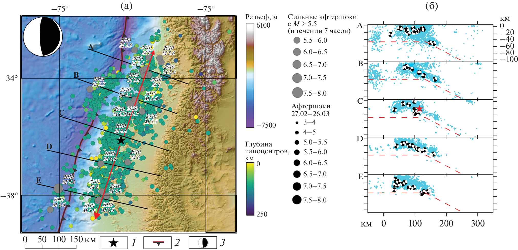 - Gavin P.H., Bergman E., Johnson K.L., Benz H.M., Brown L., Meltzer A.S. Seismotectonic framework of the 2010 February 27, Mw = 8.8 Maule, Chile earthquake sequence // Geophys. J. Int. 2013. Vol. 195. Is. 2. P. 1034–1051. https://doi.org/10.1093/gji/ggt238