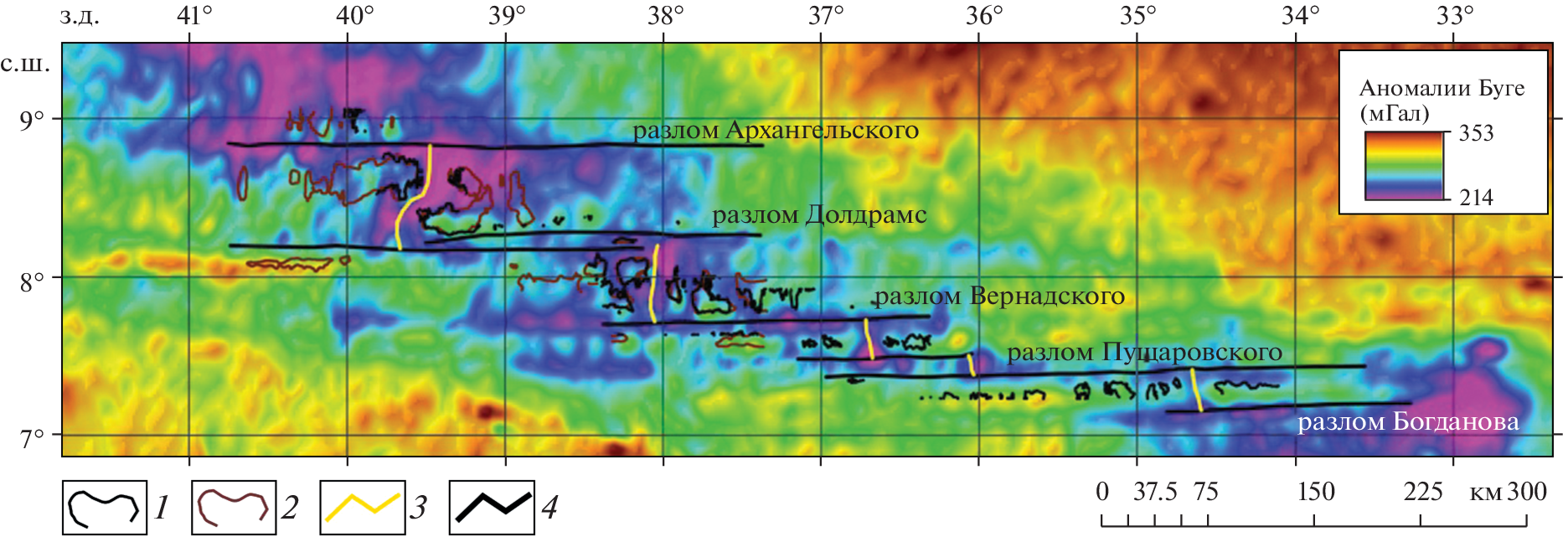 - Maia M., Sichel S., Briais A. et al. Extreme mantle uplift and exhumation along a transpressive transform fault // Nature Geoscience. 2016. V. 9 P. 619–624. https://doi.org/10.1038/NGEO2759