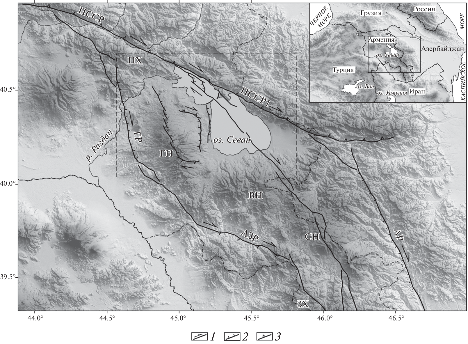 - Philip H., Avagyan A., Karakhanian A., Ritz J.-F., Rebai S. Slip rates and recurrence intervals of strong earthquakes along the Pambak‒Sevan‒Sunik fault (Armenia) // Tectonophysics. 2001. Vol. 343. P. 205−232.