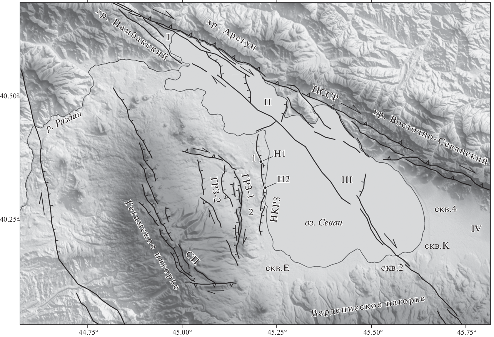 The article presents new data obtained as a result of field research in 2022 Sevan intermountain depression in Armenia. The emergence of the Sevan intermountain depression in the Miocene was associated with the development of the Sevan almond-shaped structure, bounded by the right-lateral Pambak‒Sevan‒Syunik fault zone in the northeast, the Garni zone in the south, and the Arpa‒Zangezur zone in the southwest. Within the Sevan almond-shaped structure, strike-slip structures of Small Sevan (western part of Lake Sevan) and Gavar almond-shaped structure, Gavar horst, a number of faults, as well as extension zones were formed, including the southern part of Greater Sevan (eastern part of Lake Sevan) and axial zone of the Geghama Range. The development of the Sevan intermountain depression continued in the Pliocene under the influence of the uplift of the Lesser Caucasus and the Armenian Highlands. We have summarized the available data on the geological structure and geodynamics of the Sevan intermountain depression, presented the obtained data on the stratigraphy of the Pliocene–Quaternary deposits and their position, and showed that during the Akchagyl transgression at the Pliocene–Pleistocene boundary, sedimentary accumulations did not occur in the Sevan intermountain depression.