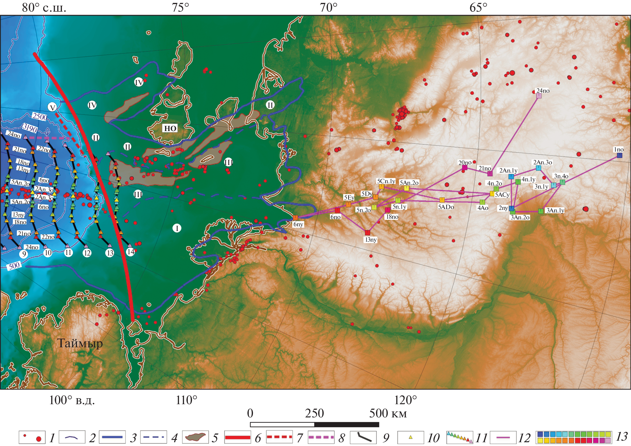 - Nikishin A.M., Gaina C., Petrov E.I. et al. Eurasia Basin and Gakkel Ridge, Arctic Ocean: Crustal asymmetry, ultra-slow spreading and continental rifting revealed by new seismic data // Tectonophysics. 2018. Vol. 746. P. 64–82.