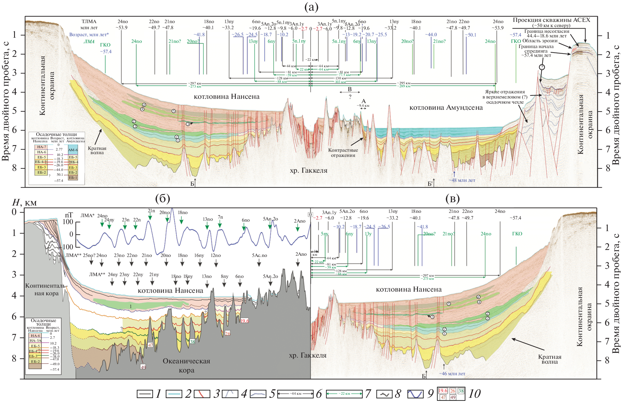 - Engen Ø., Gjengedal J.A., Faleide J.I., Kristoffersen Y., Eldholm O. Seismic stratigraphy and sediment thickness of the Nansen Basin, Arctic Ocean // Geophys. J. Int. 2009. Vol. 176. P. 805–821.
