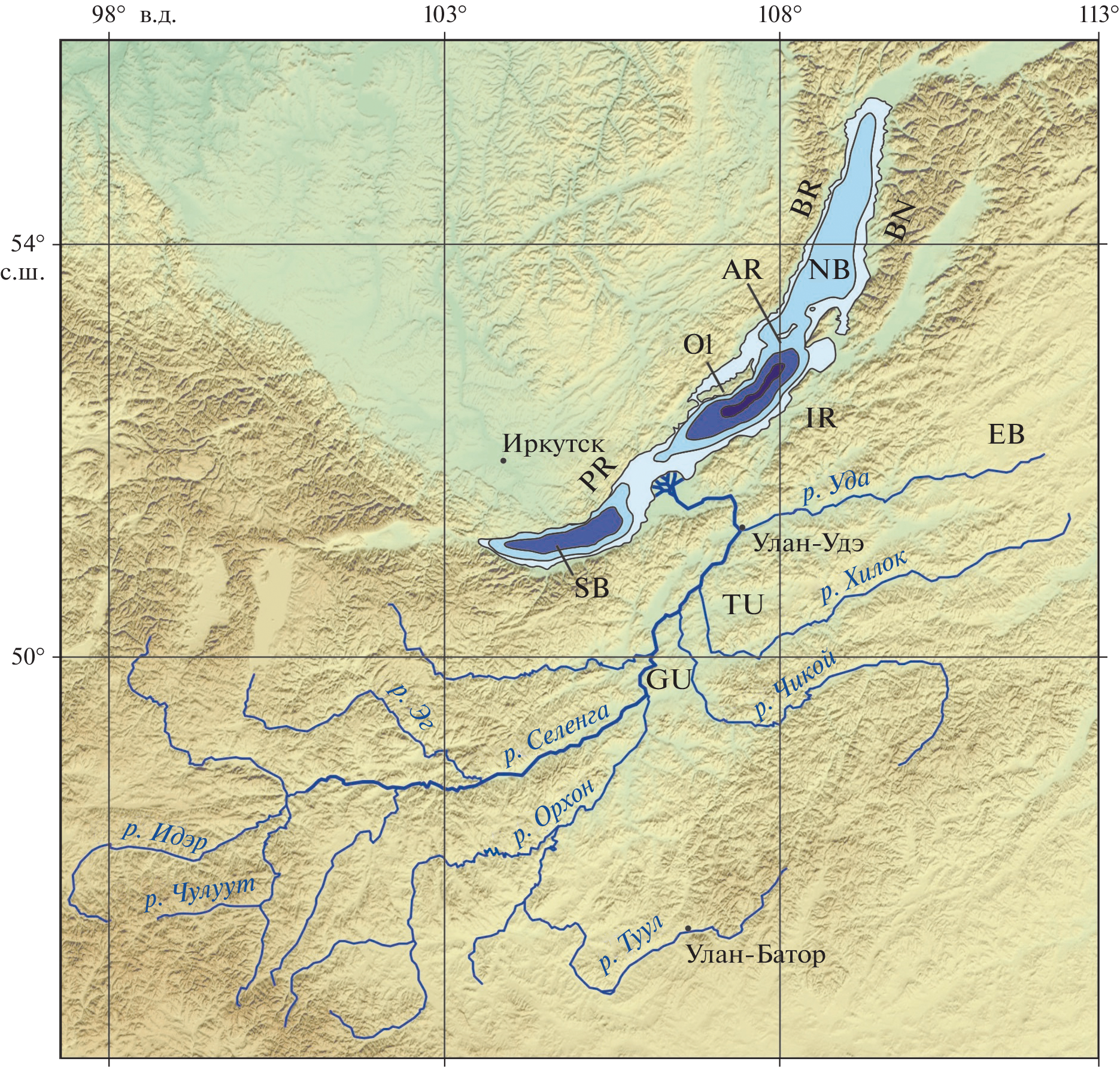 - Krivonogov S.K., Safonova I.Y. Basin structures and sediment accumulation in the Baikal Rift Zone: Implications for Cenozoic intracontinental processes in the Central Asian Orogenic Belt // Gondwana Research. 2017. Vol. 47. P. 267–290.