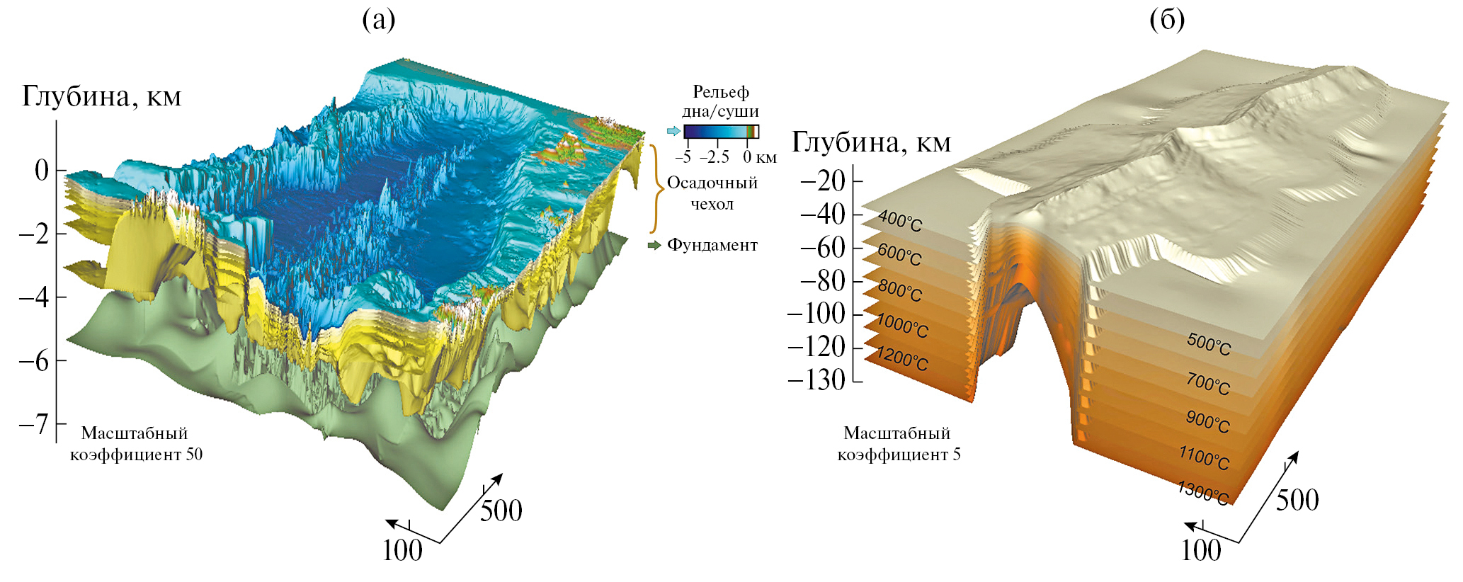 - учет влияния термического состояния литосферной мантии континентальных окраин и зоны перехода континент‒океан в 3D постановке.
