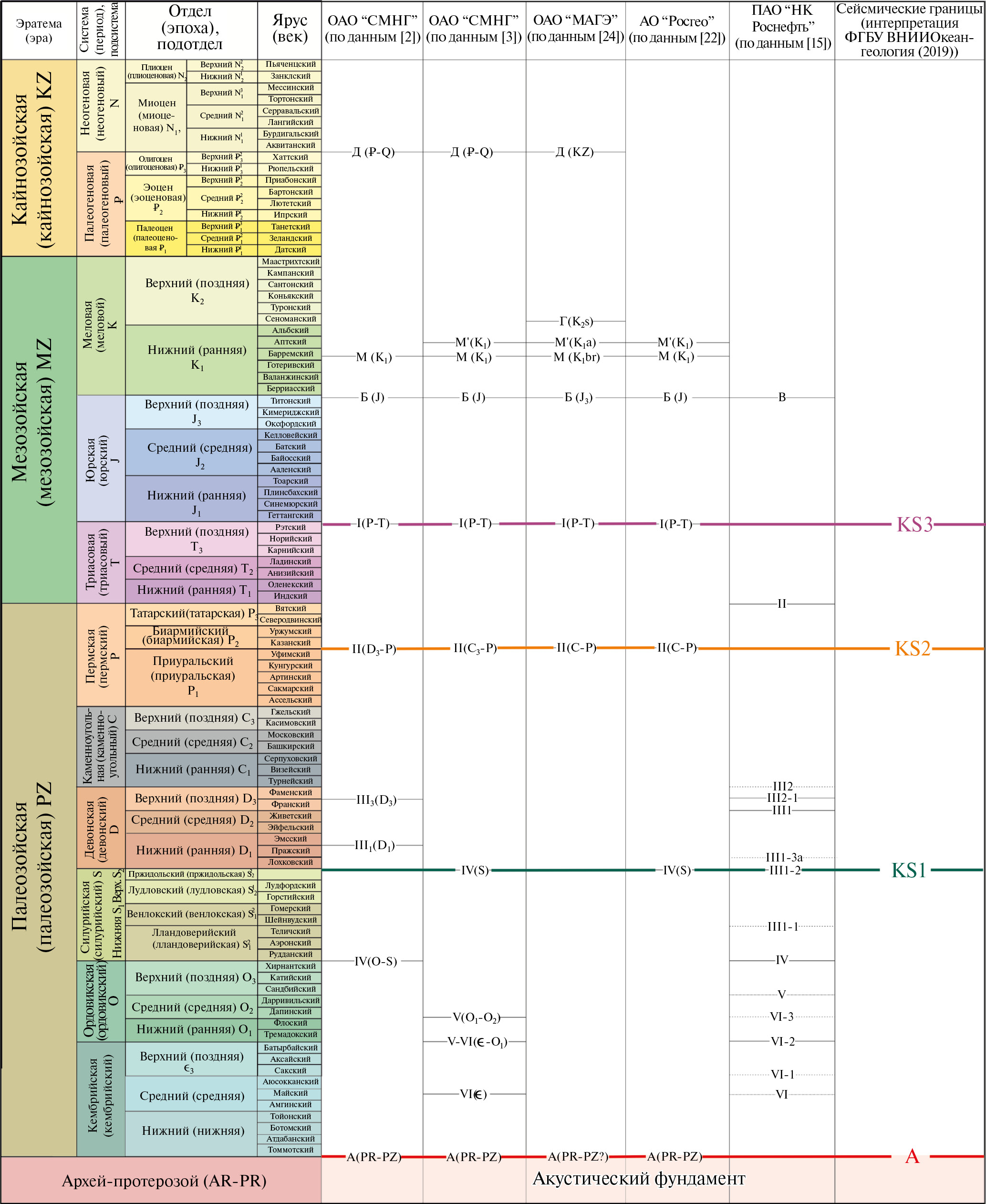 - KS2 – внутрипермское несогласие, отделяющее карбонатные коллекторские толщи от терригенных толщ;