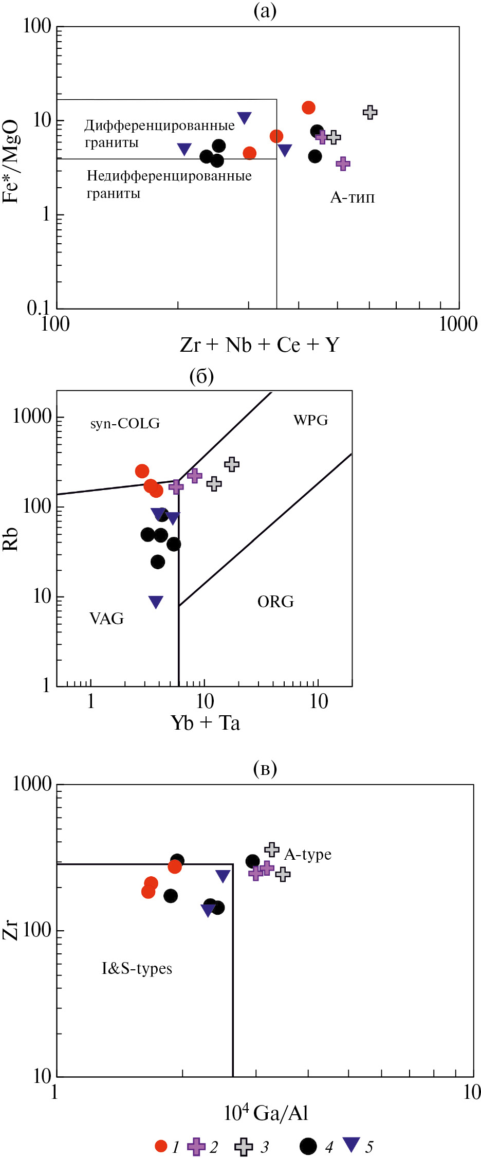 - Whalen J.B., Currie K.L., Chappell B.W. A-type granites-geochemical characteristics, discrimination and petrogenesis // Contrib. Mineral. Petrol. 1987. Vol. 95. P. 407–419.