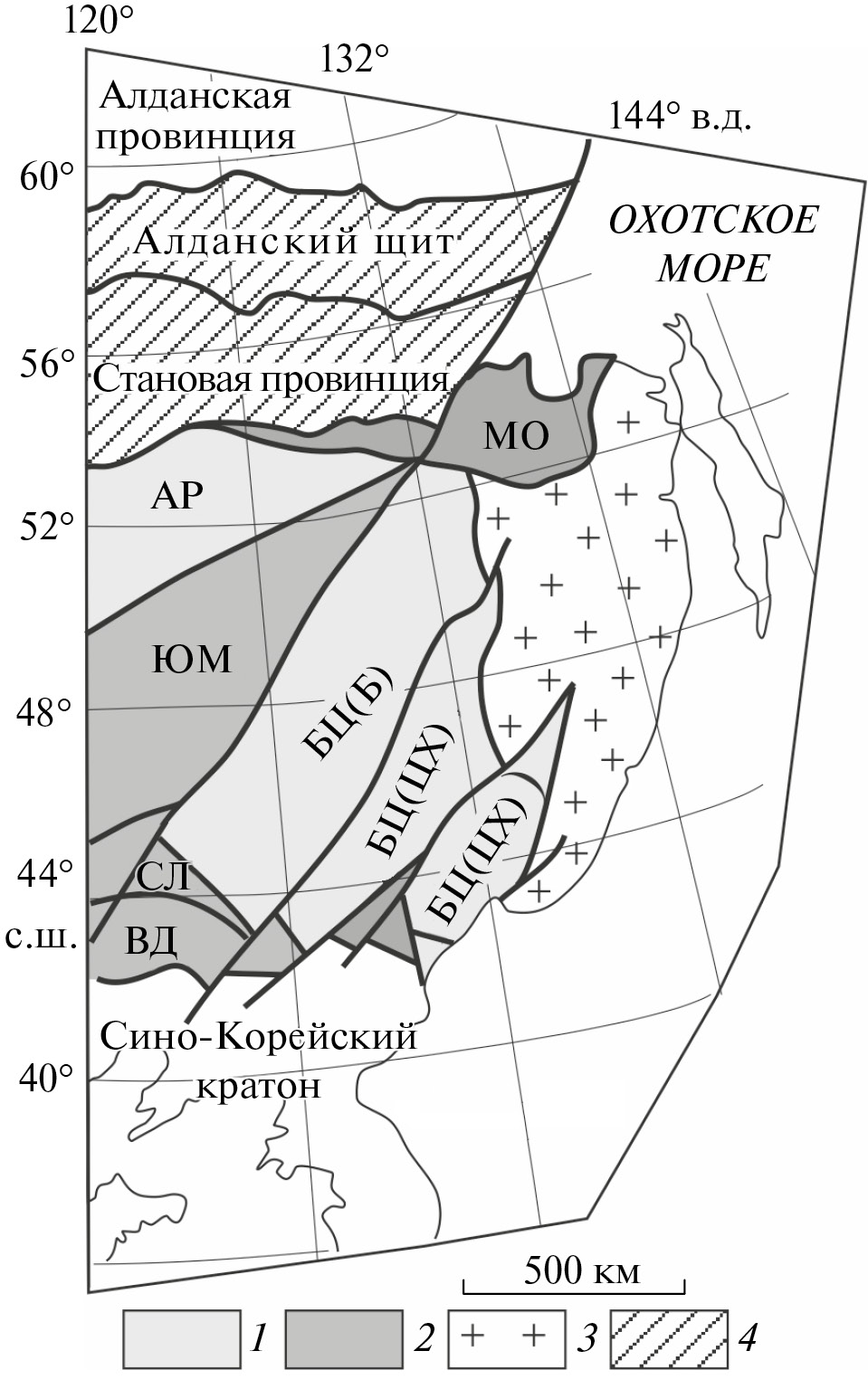 Исследователи, разработавшие мобилистическую трактовку геологического строения области перехода от Азиатского континента к Тихому океану, рассматривали фундамент Охотского моря как малую литосферную плиту, перемещенную в ее современное положение [11, 33, 83].
