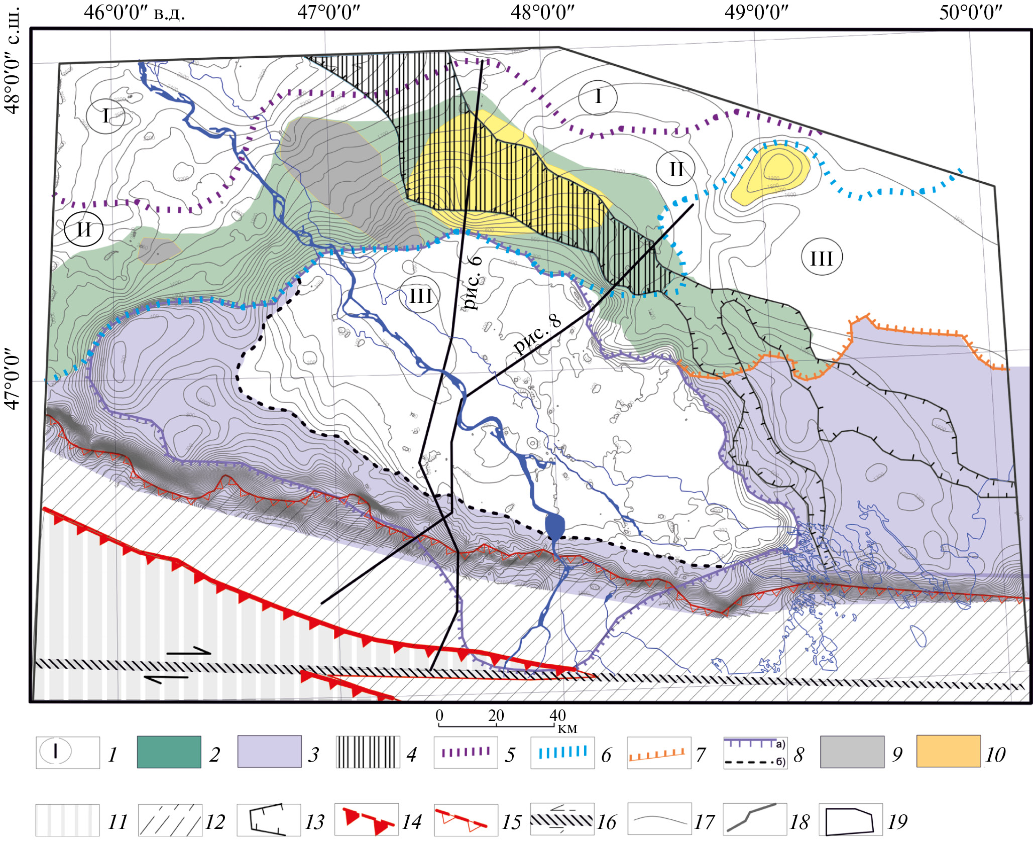 ‒ сложная конфигурация ее внешней границы обусловливается особенностями регионального (в вертикальном и латеральном направлениях) распространения глубоководных отложений [8];