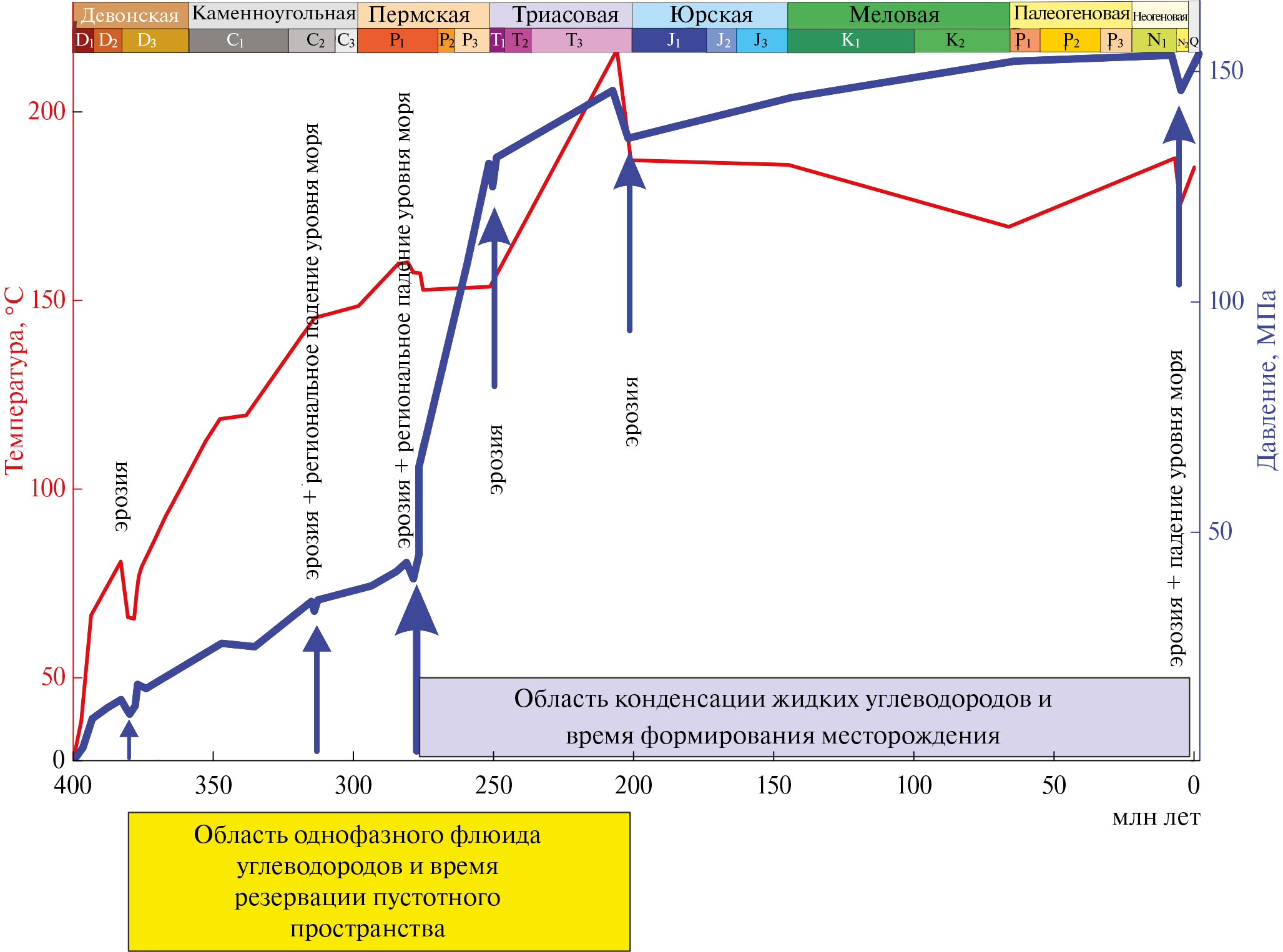 ‒ фазовое обособление углеводородов для Северо-Астраханского резервуара и Тамбовско-Володаровского мини-очага начинается после формирования региональных покрышек, что можно рассматривать как благоприятный признак сохранности углеводородов на последующих этапах геологической истории вплоть до настоящего времени.