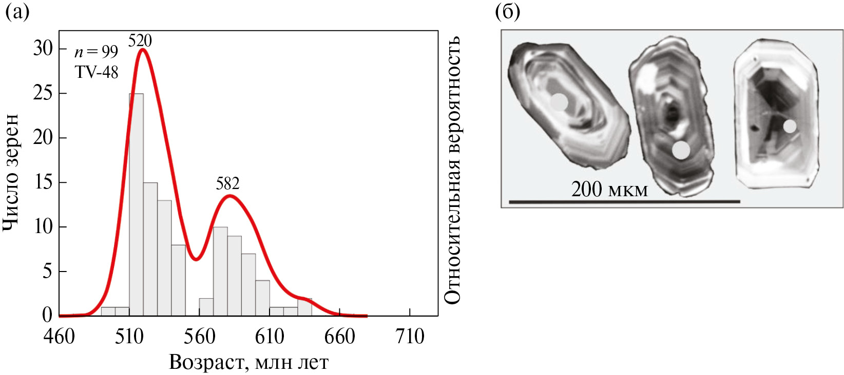 Обработка выполненных измерений проводилась в программах Iolite-4.x [36], Dezirteer [37] и ISOPLOT [33] В интерпретации учитывались только оценки возраста, дискордантность которых не превышает 10 %. Гистограммы и кривые относительной вероятности построены по 207Pb/206Pb-значениям возраста с ошибкой 1σ.