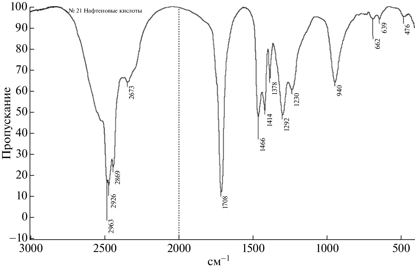 Исследовано формирование нефтяного осадка в высокопарафинистой нефти в присутствии карбоновых и нафтеновых кислот. Показано влияние концентрации и состава кислот на процесс ингибирования осадка и содержание в нем парафинов, смол и асфальтенов. В составе осадков, полученных из нефти с добавками кислотных реагентов, повышается количество легких н-алканов и снижается доля более высокомолекулярных углеводородов. В составе смол осадков, полученных с добавками кислотных реагентов, снижается содержание алифатических фрагментов и карбоксильных групп и возрастает коэффициент ароматичности. Асфальтены в осадке характеризуются снижением содержания ароматических структур и карбоксильных групп.