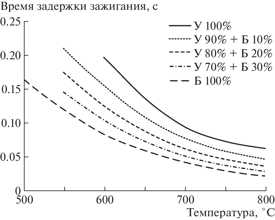 techniques, analytical instrumentation, and experimental equipment. The biomass contents of the fuel mixtures based on coal were 10, 20, and 30 wt %. The temperatures at which the ignition of the coke residue occurred and the combustion process was completed were established using the synchronous thermal analysis of individual solid fuels and their mixtures. Larch sawdust was more reactive than Chernogorsky coal due to the lowest temperature at which the carbon residue was ignited; therefore, the addition of even 10% biomass to coal had a positive effect on the reactivity of the mixture. Under conditions of fuel heating in a flow of air at temperatures of 500–800C, the ignition delay times were determined using a hardware–software complex for high-speed video recording of fast processes. Based on the results of the experimental studies, it was found that the ignition delay times of the test fuels in a flow of heated air varied in a range from 0.02 to 0.22 s, and the addition of 10–30 wt % biomass to coal shortened the ignition delay times of fuel mixtures by up to 50%. The analysis of flue gases upon the combustion of solid fuels made it possible to establish the concentrations of the main anthropogenic emissions; the use of biomass as an additive to coal reduced the emissions of carbon