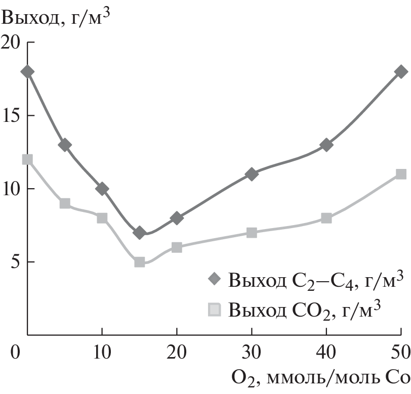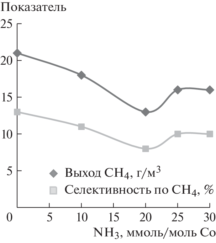 linear C5+ hydrocarbons. The observed effect can be explained by partial blocking of the sites of direct CO hydrogenation to methane and modification of Lewis acid sites. The data obtained were consistent with the concept of the two-center surface model of Co catalysts for the Fischer–Tropsch synthesis and the theory of astoichiometric components of catalytic reactions.