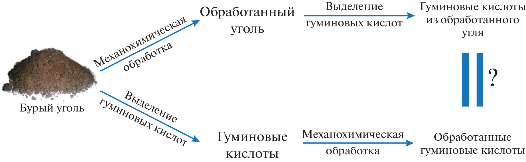 Проведено сравнение протекания реакции гуминовых кислот в чистом виде и в составе угля при твердофазной механохимической обработке с перкарбонатом натрия. Методами CHNO-анализа, ИК-спектроскопии и потенциометрического титрования исследованы изменения состава гуминовых кислот, механохимически обработанных после выделения из бурого угля. Изучены сорбционные свойства по отношению к ионам тяжелых металлов (Zn2+, Cu2+ и Cd2+) и их изменения в результате обработки. Полученные результаты соотносены с данными, аналогичными для гуминовых кислот, прошедших механохимическую обработку в составе угля. Показано, что увеличение выхода гуминовых кислот и содержания фенольных и карбоксильных групп в буром угле в результате обработки с перкарбонатом натрия на сегодняшний день можно объяснить окислением других (отличных от гуминовых кислот) фракций органического вещества бурого угля.
