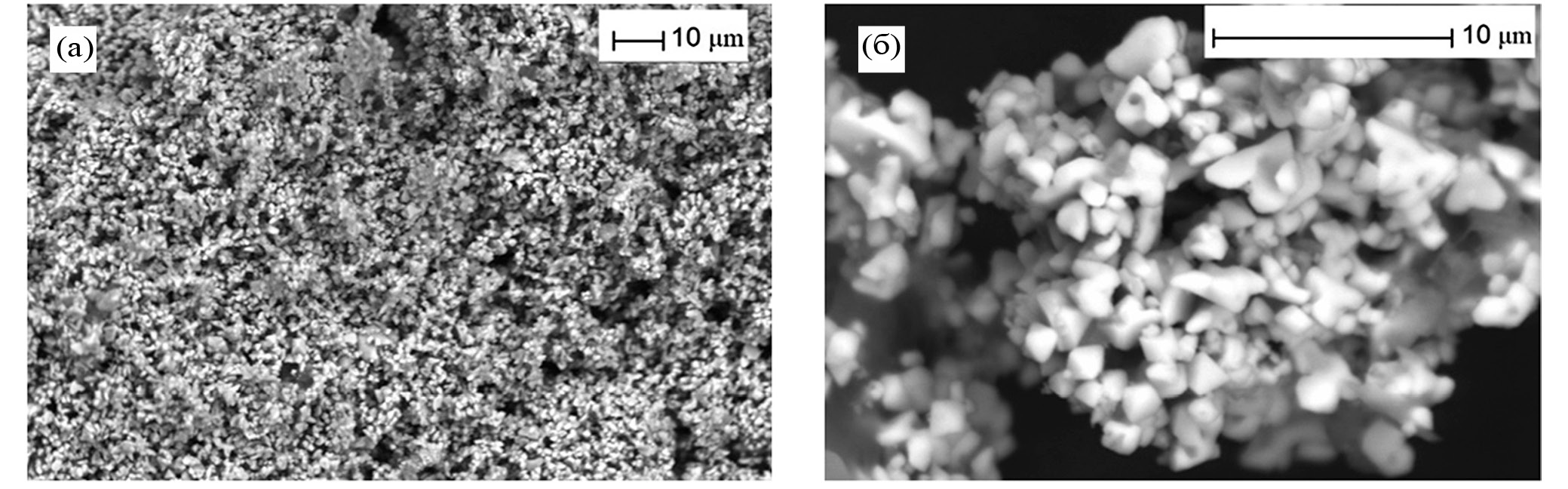 Для изучения морфологии и размеров частиц оксидов железа, полученных в условиях СКВ, был проведен анализ с помощью сканирующего электронного микроскопа JCM-6000 при ускоряющем напряжении 20 кВ. Изображения SEM оксидов железа показаны на рис. 1. Полученные частицы агломерированы, их размер менее 5 мкм.