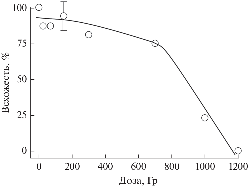 The effect of γ-radiation doses from 100 to 3000 kGy on the toxic properties and germination of oat seeds has been + studied. A tendency has been noted for a 15–25% decrease in the germination of oat seeds under laboratory conditions in the range of presowing irradiation doses of 10–700 Gy. After irradiation with a dose higher than 1 kGy, the seeds lost their ability to germinate. Curves reflecting the dependences of the length of oat stalk on the dose of presowing irradiation of seeds exhibited two areas with a characteristic separation point at doses of 70 Gy, below which the degree of influence of the irradiation dose on the height of