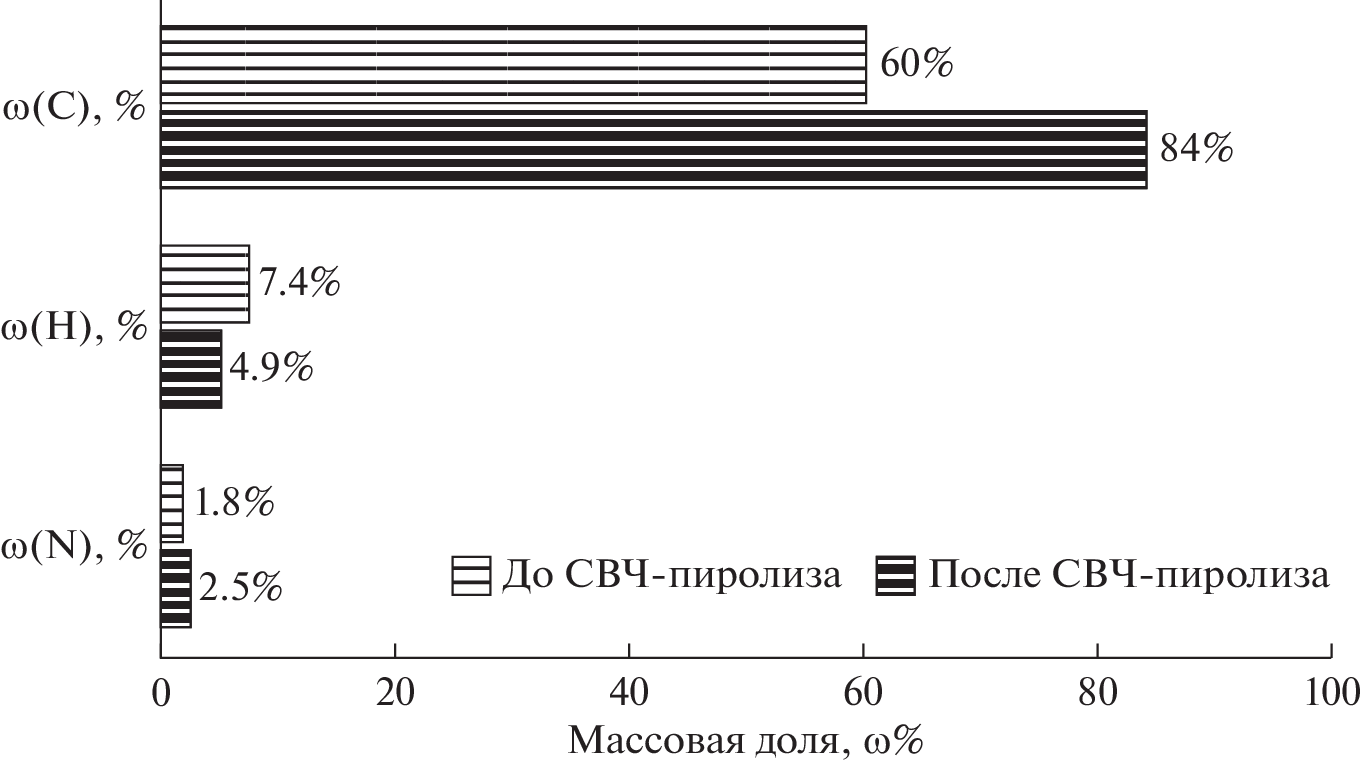 A facility for conducting experiments on the microwave (MW) pyrolysis of peat at a source operating frequency of 2.45 GHz has been developed. The MW pyrolysis of peat for the production of low-molecular-weight organic components has been experimentally studied. The products of peat MW radiationinduced decomposition were determined, and reaction schemes for the degradation of peat components were proposed. A carbonaceous residue with relative carbon, hydrogen, nitrogen, and sulfur contents of 83–85, 4–5, 2–3, and <0.3 wt %, respectively, was obtained.