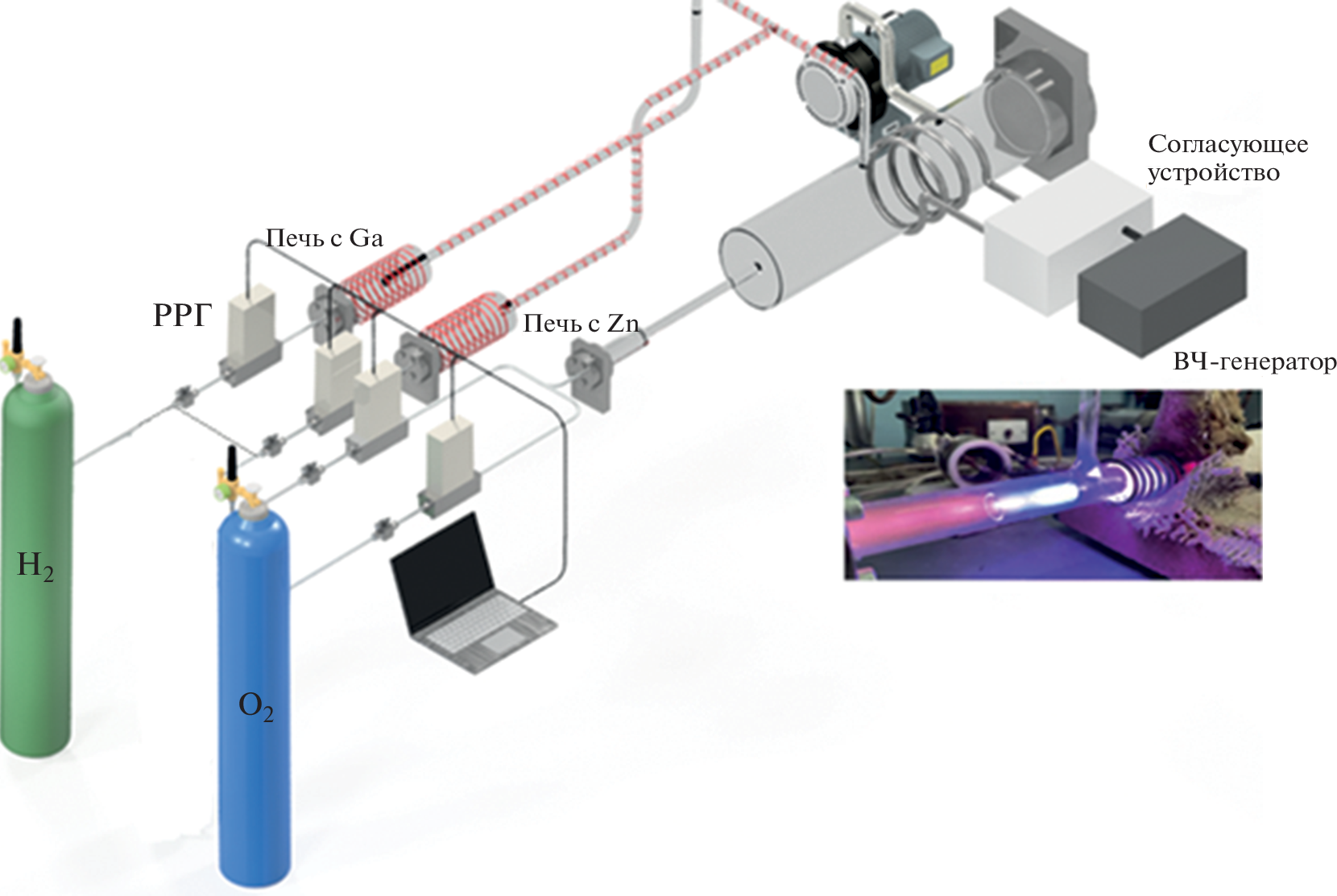 A process for fabricating Zn-doped (up to 10 at %) β-Ga2O3 thin films by plasma-enhanced chemical vapor deposition has been studied. High-purity gallium, zinc, and oxygen were used as starting materials, and hydrogen was chosen as the carrier and plasma gas. A low-temperature nonequilibrium RF (40.68 MHz) discharge plasma at a reduced pressure (0.01 torr) was used to initiate chemical reactions of precursors. The