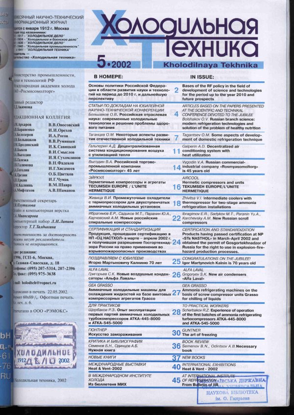 The choice of promising directions of development of domestic machine-building is based both on our own scientific achievements and on studying the trends of development of the world refrigeration science and technology, carrying out the conjunctural investigations and prediction of potential users of artificial cold.