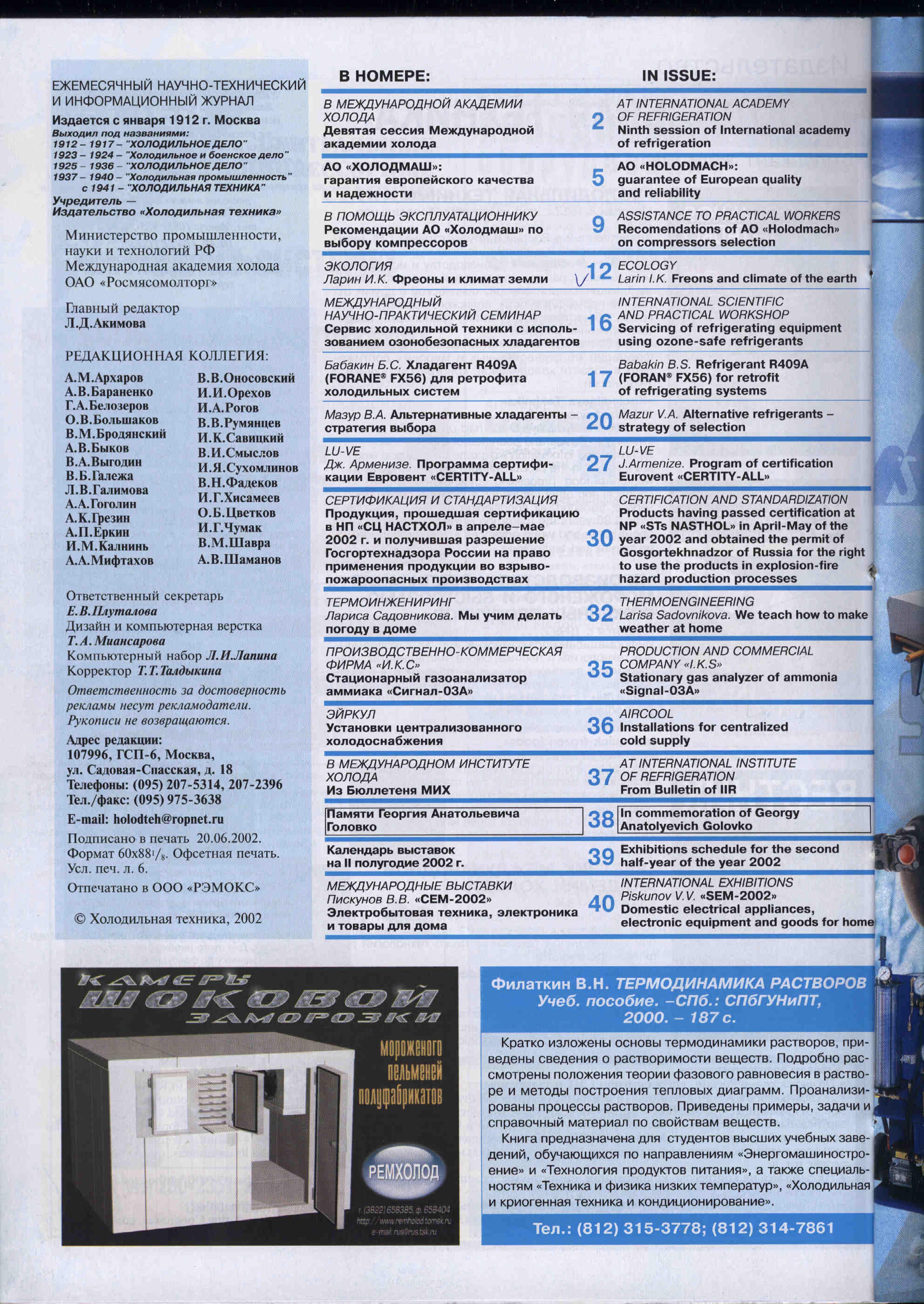 On April 23, 2002 the Ninth General Meeting of the International Academy of Refrigeration was held in St. Petersburg State University of Low Temperature and Food Technologies.