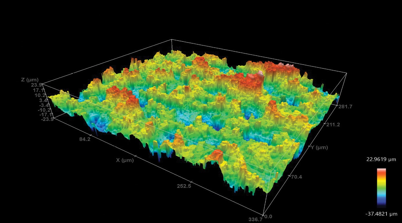 Рис. 1. Изображение профиля поверхности супергидрофобного образца, полученное с применением конфокального микроскопа.
