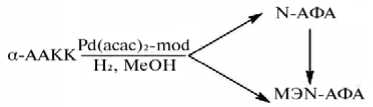 При гидрировании прохиральной С=С связи в N-ацетил-α-амидокоричной кислоте (α-ААКК) на исследуемых каталитических системах Pd(Acac)2–mod–H2 протекает реакция насыщения С=С связи по схеме 2.