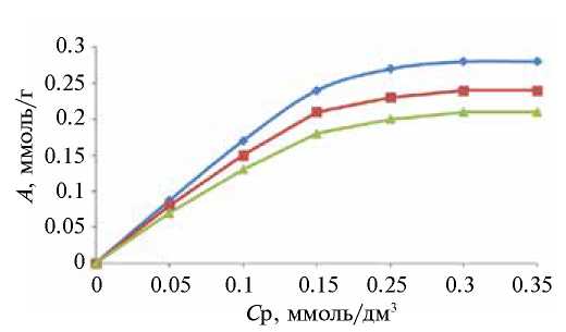 Для сравнения сорбционных свойств ОГ250 и ОГ350 строили изотермы адсорбции (рис. 5) в статическом режиме по методике, описанной в разделе “Методика и материалы”.