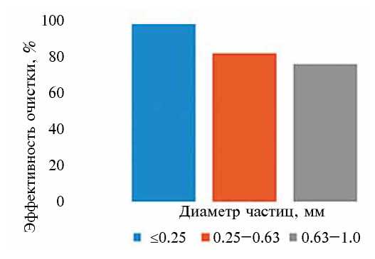 Рис. 8. Зависимость эффективности очистки растворов МГ от размера частиц ОГ350.