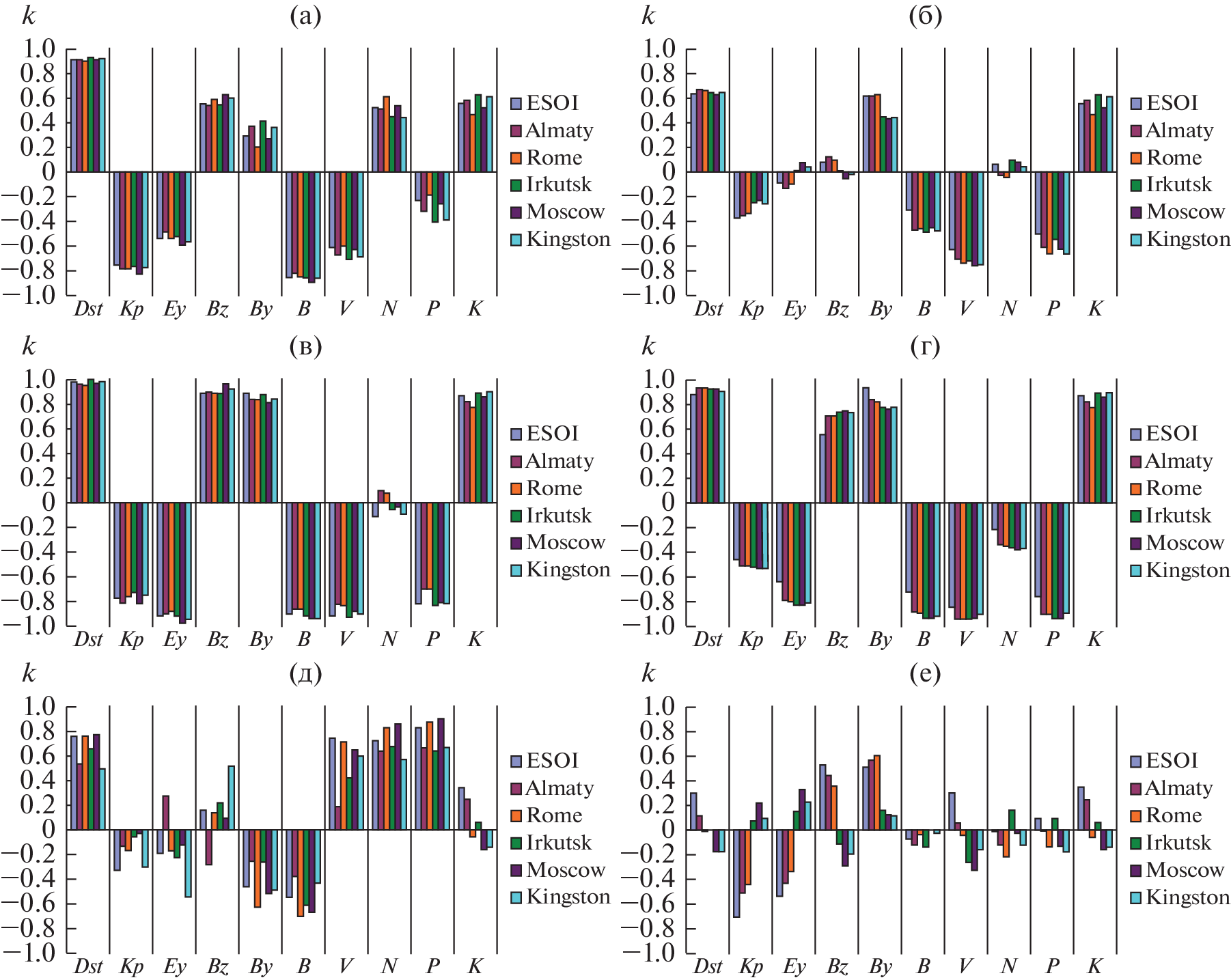 - Burton R.K., McPherron R.L., Russell C.T. An empirical relationship between interplanetary conditions and Dst // J. Geophys. Res. 1975. V. 80. Is. 31. P. 4204–4214. https://doi.org/10.1029/JA080i031p04204