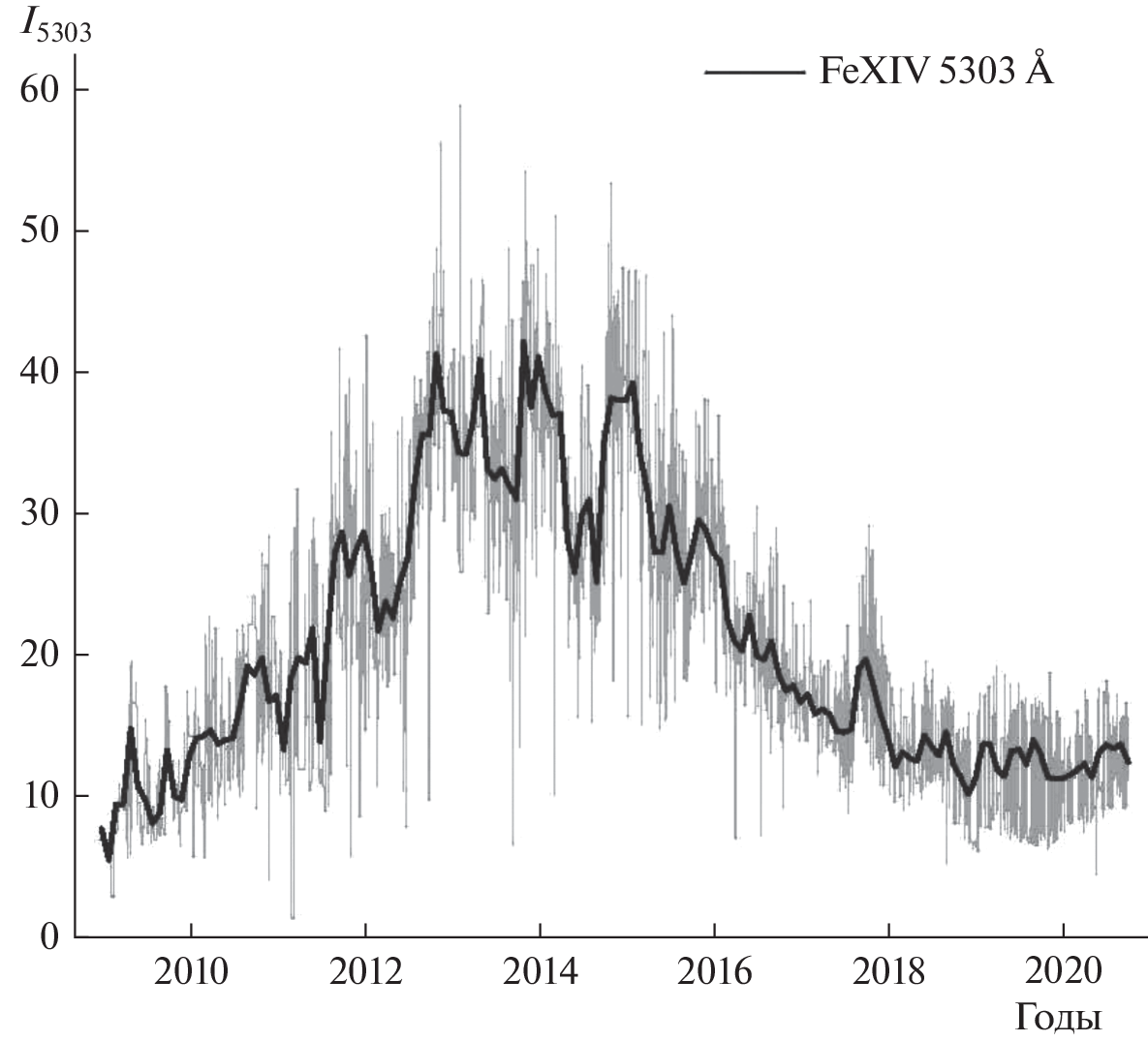 - Fisher R.R. λ 5303 Fe XIV density models of the inner solar corona // Solar Physics. 1978. V. 57. № 1. P. 119–128.