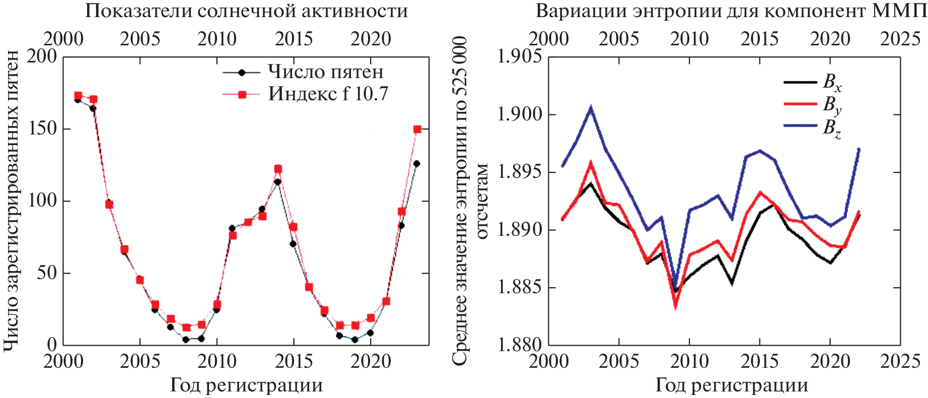 - Balasis G., Daglis I.A., Papadimitriou C. et al. Dynamical complexity in dst time series using non-extensive Tsallis entropy // Geophysical Research Letters. 2008. V. 35. Iss. 14.